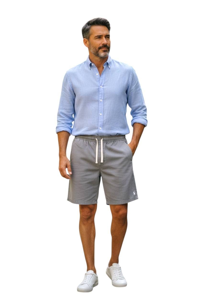 Bermuda Ralph Lauren Masculina Casual Puro Algodão Cinzenta
