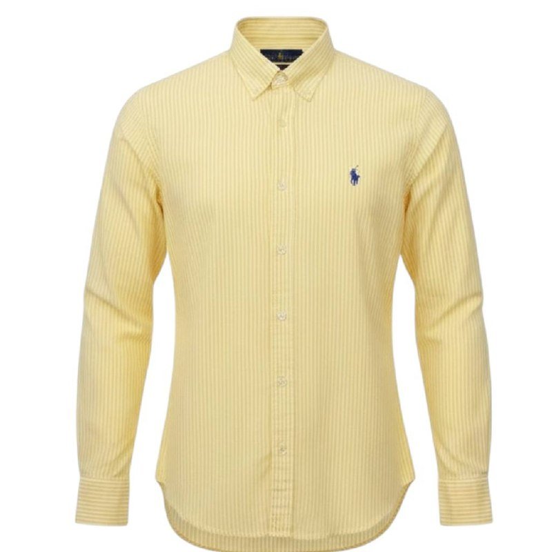 Camisa Ralph Lauren Masculina Amarela Listras Americana Pony Azul