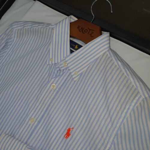 Camisa Ralph Lauren Masculina Azul Bebê Listras Americana Pony Laranja