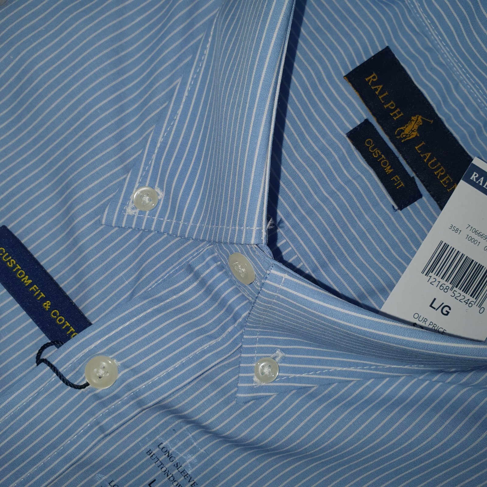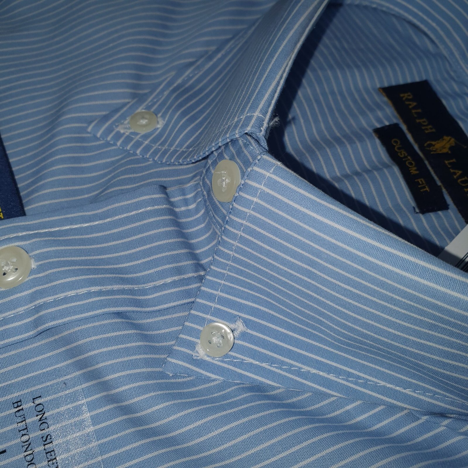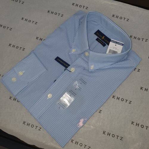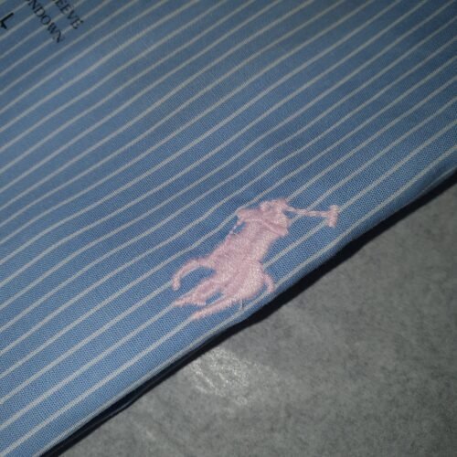 Camisa Ralph Lauren Masculina Azul Bebê Listras Minimalista Pony Rosa