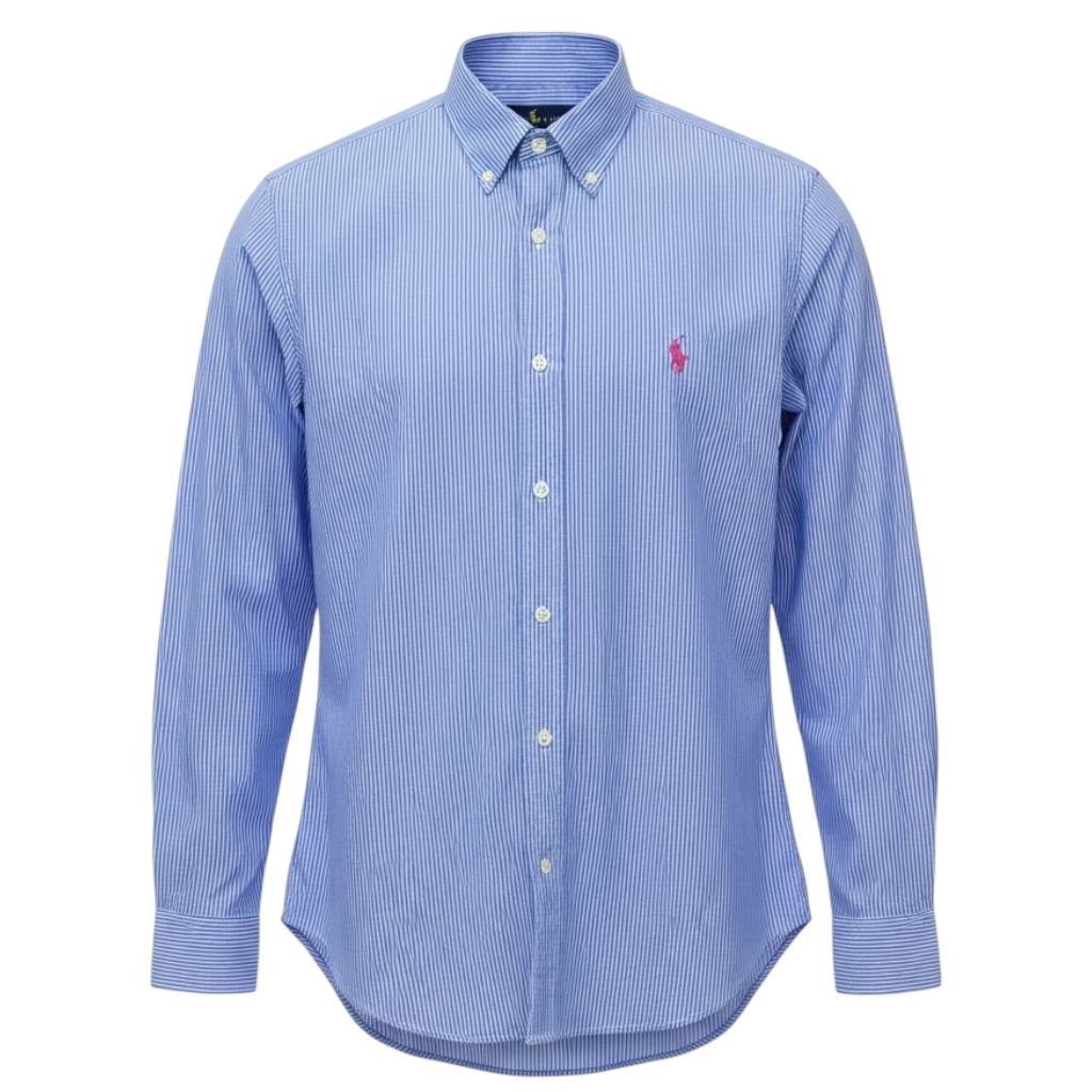 Camisa Ralph Lauren Masculina Azul Listras Executiva Pony Rosa