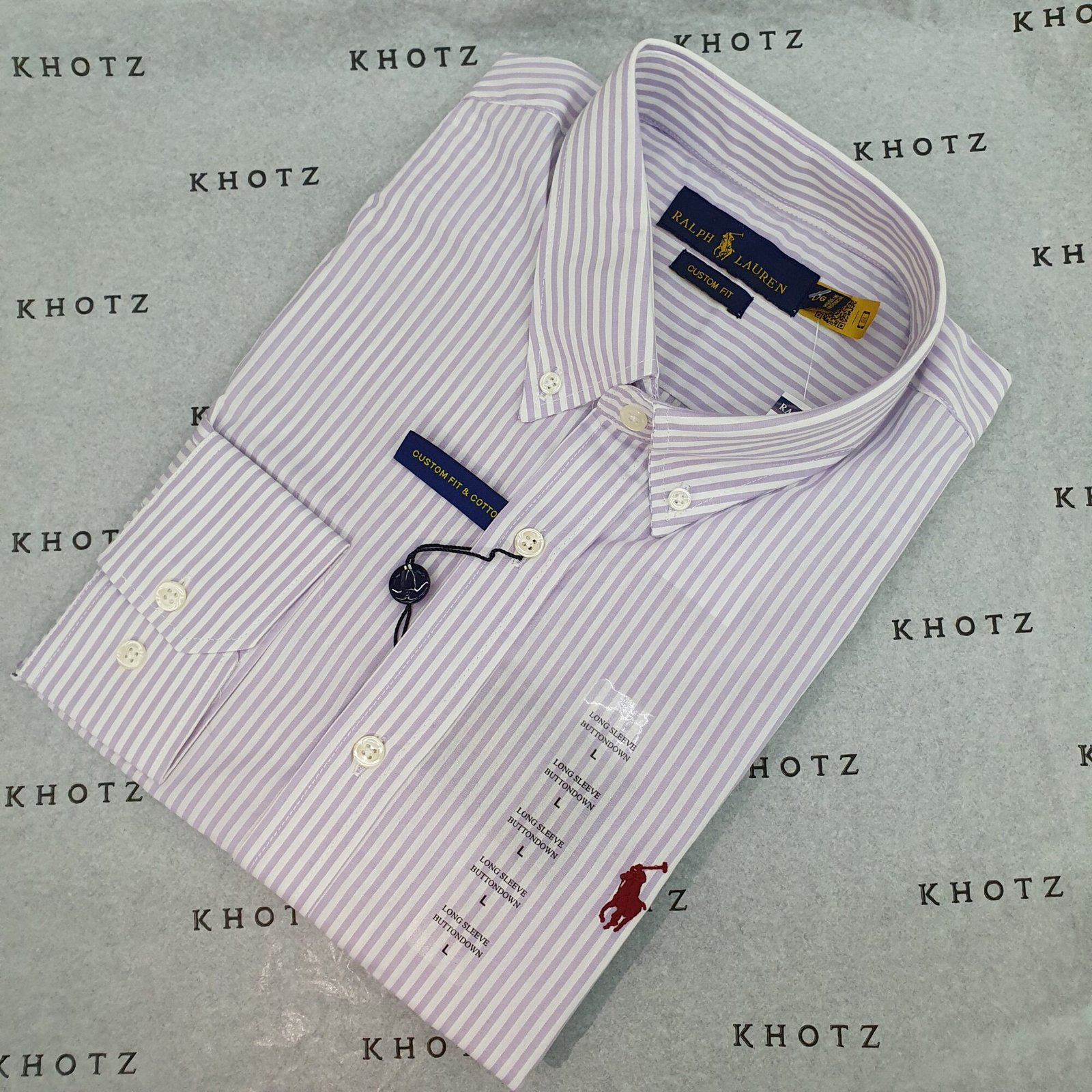 Camisa Ralph Lauren Masculina Lilás Listras Americana Pony Lavanda