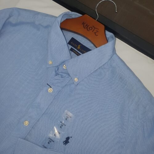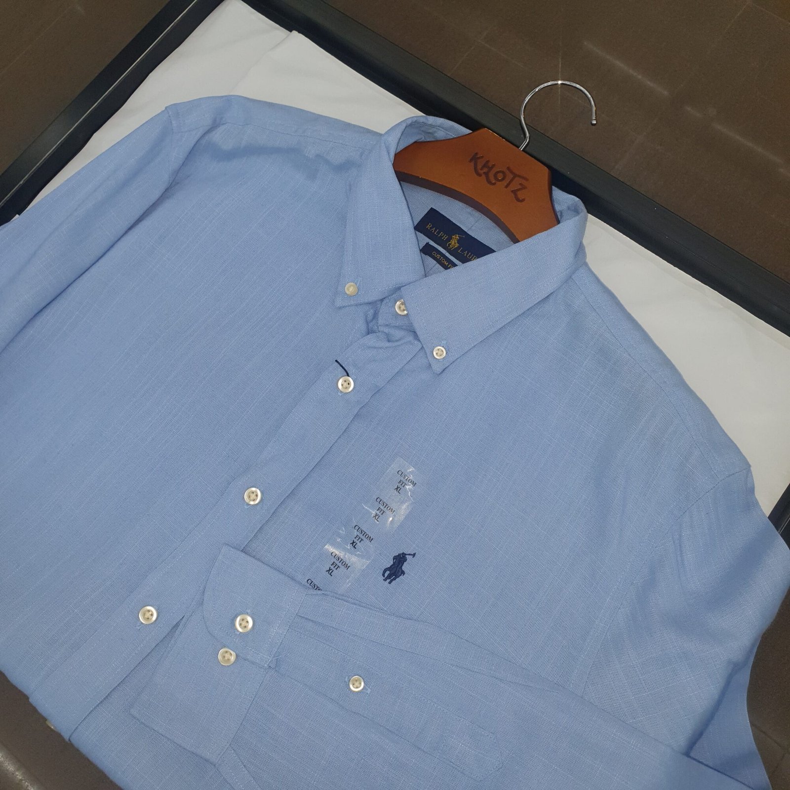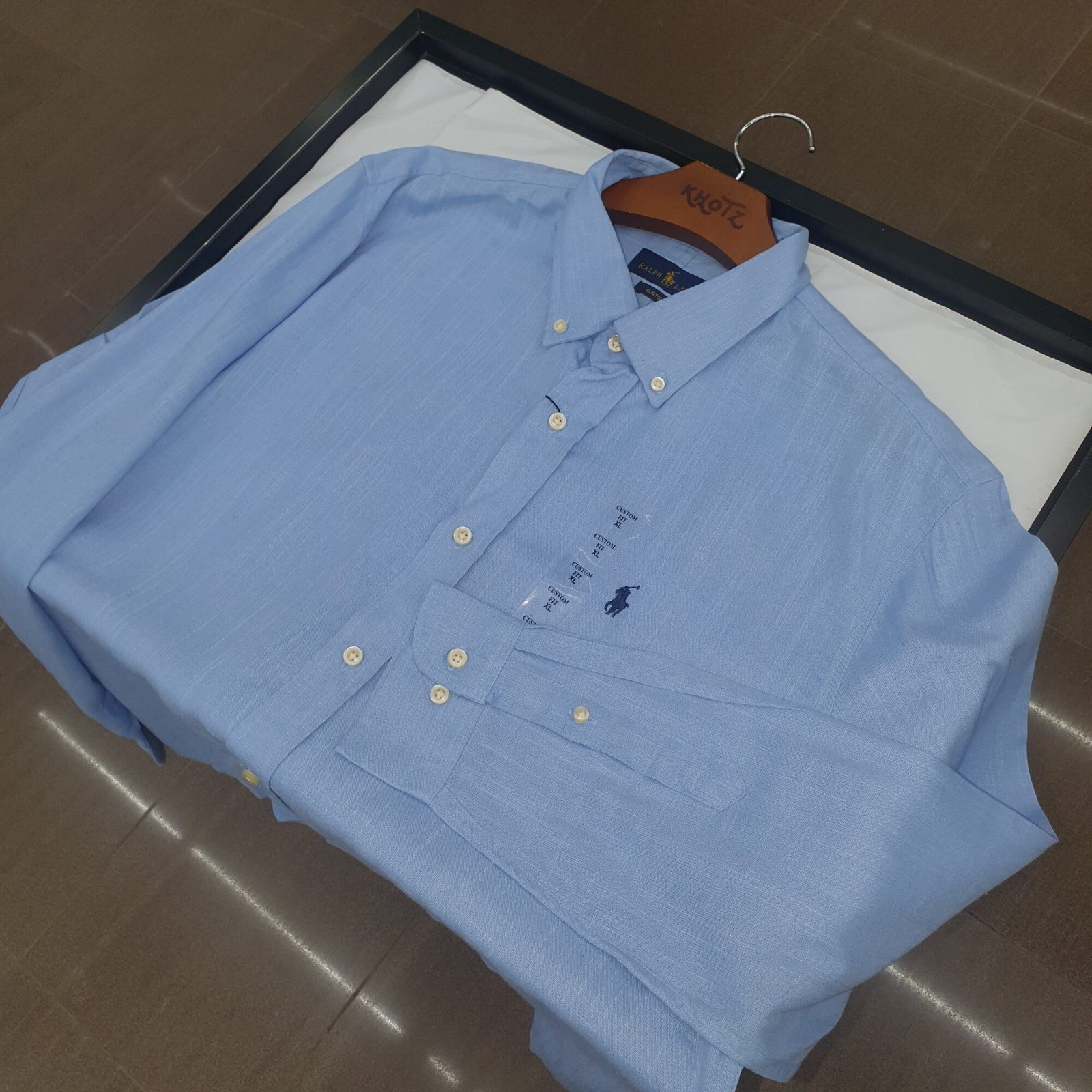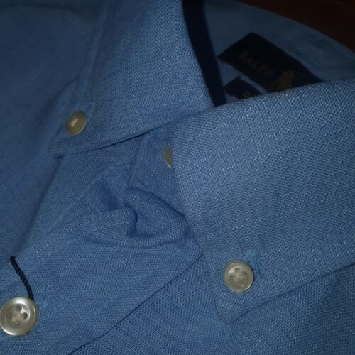Camisa Ralph Lauren Masculina Linho Azul Celeste Pony Marinho