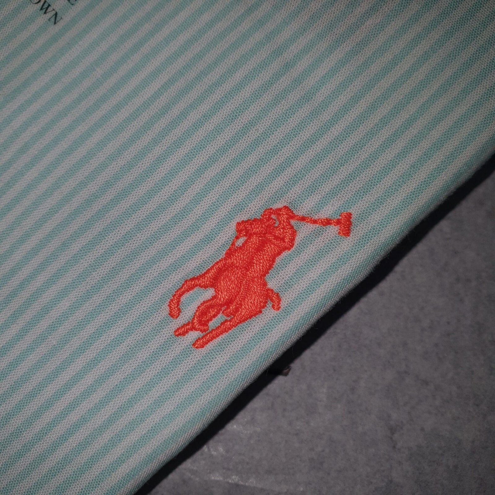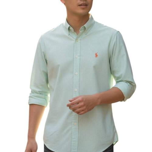 O padrão Listras América, tradicional e sofisticado, garante um visual alinhado e atemporal. Já o Pony bordado em laranja traz um ponto de cor vibrante e contemporâneo, criando contraste na medida certa e elevando a identidade da peça com estilo e exclusividade.