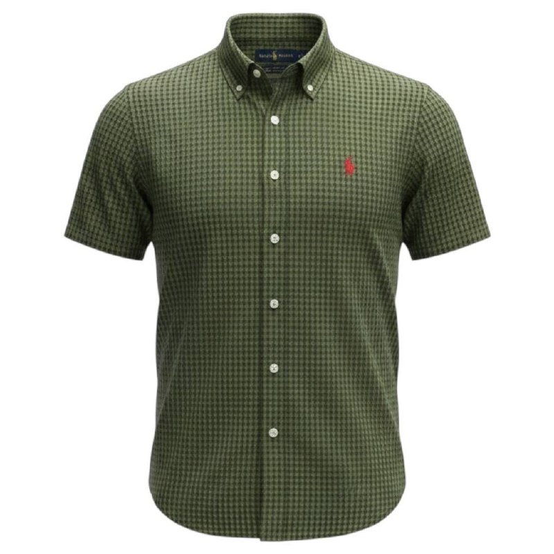 Camisa Ralph Lauren Masculina Manga Curta Micro Xadrez Verde Eucalipto Pony Vermelho