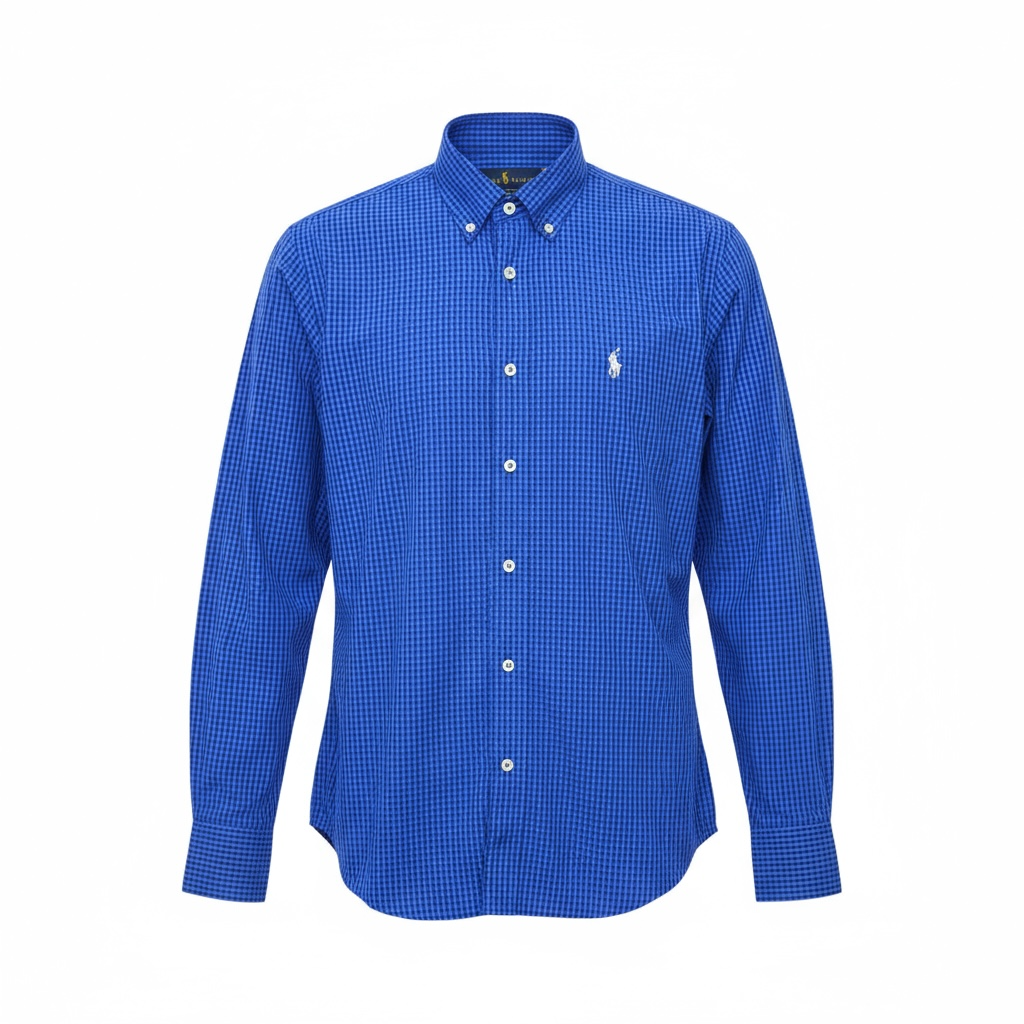 Camisa Ralph Lauren Masculina Micro Xadrez Australiano Azul Pony Cinza
