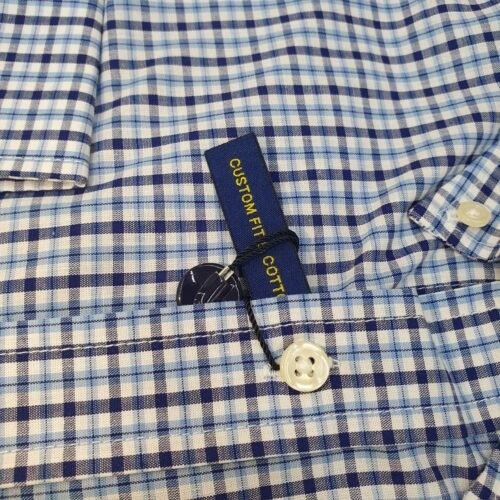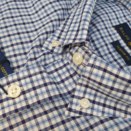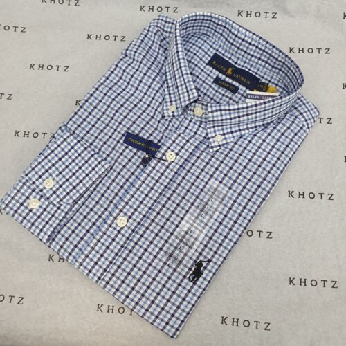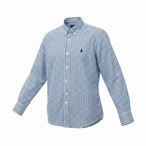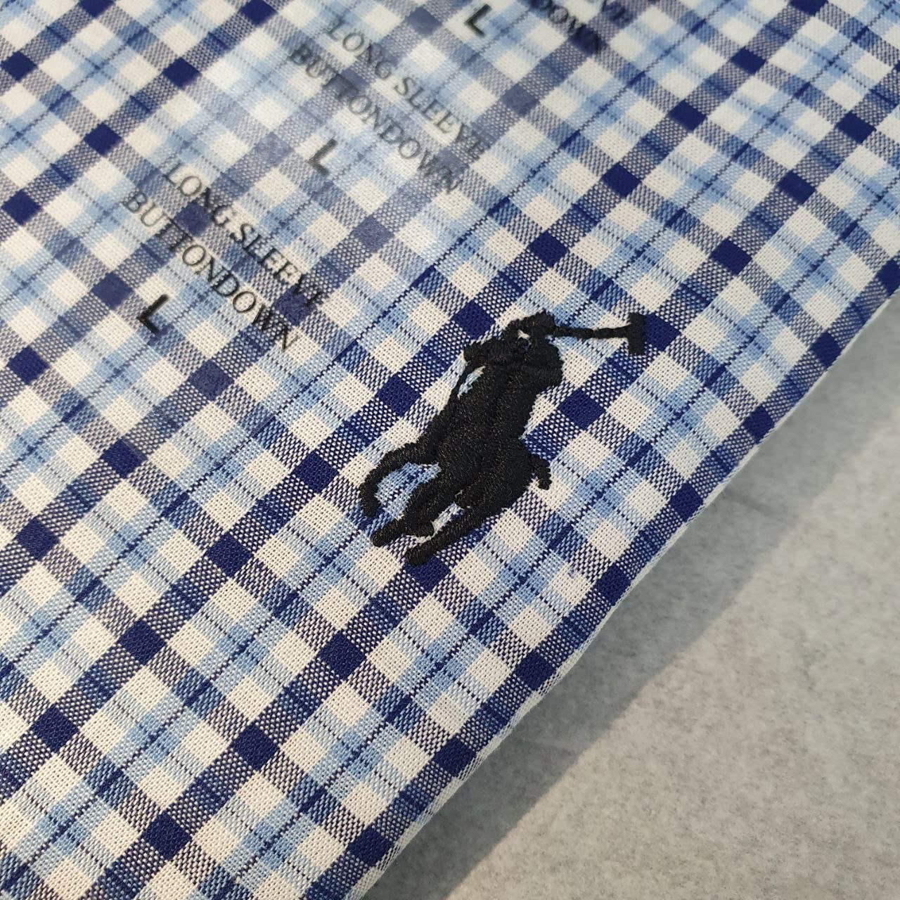 Camisa Ralph Lauren Masculina Micro Xadrez Azul Celeste Pony Preto