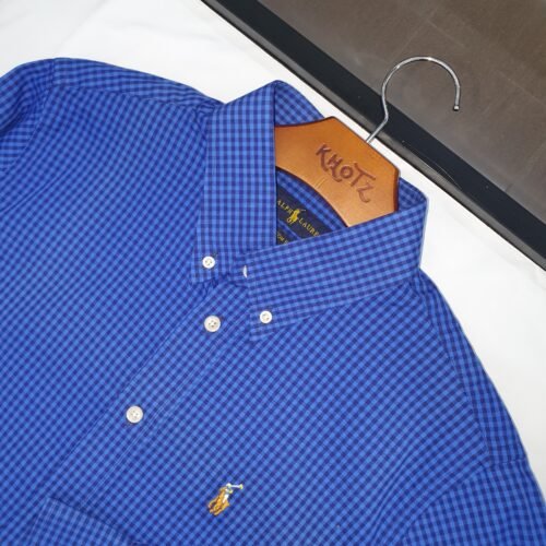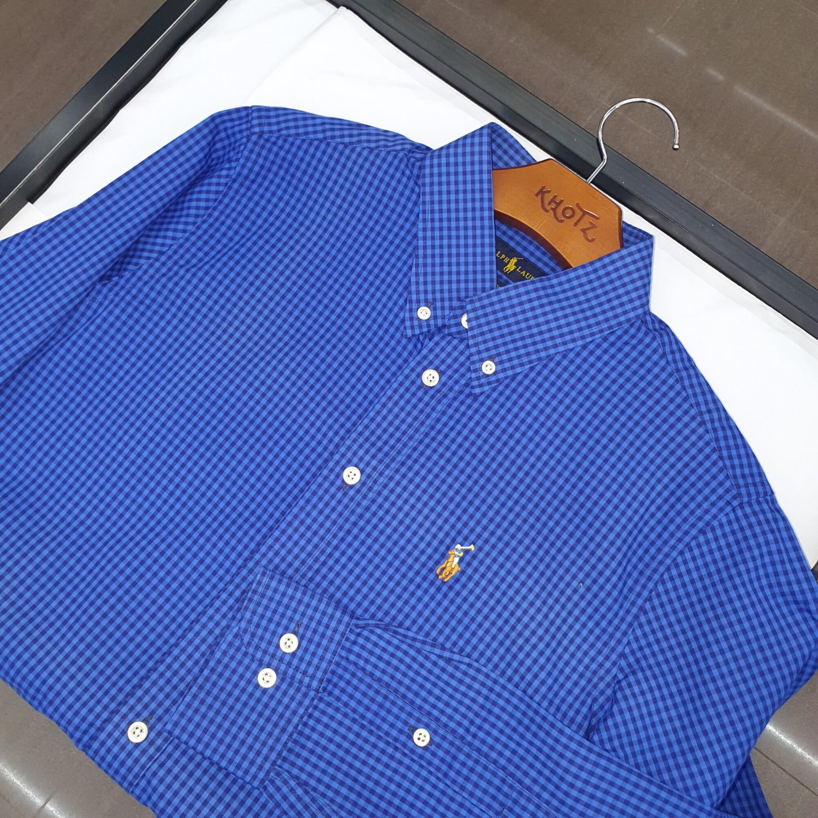 Camisa Ralph Lauren Masculina Micro Xadrez Azul Royal Pony Colorido