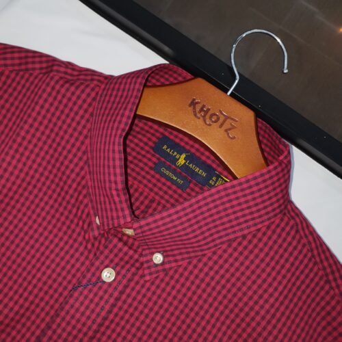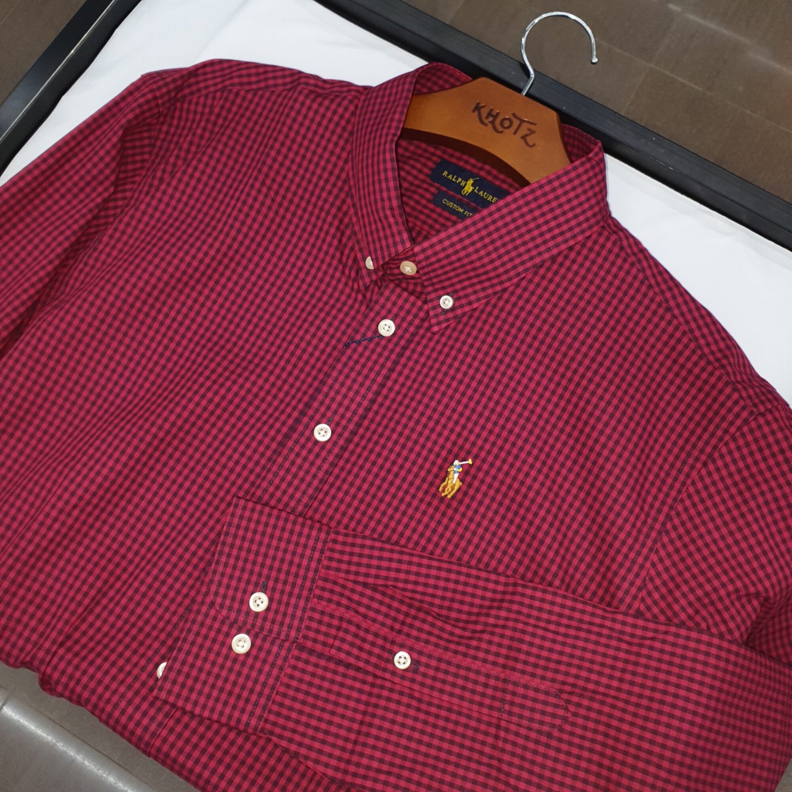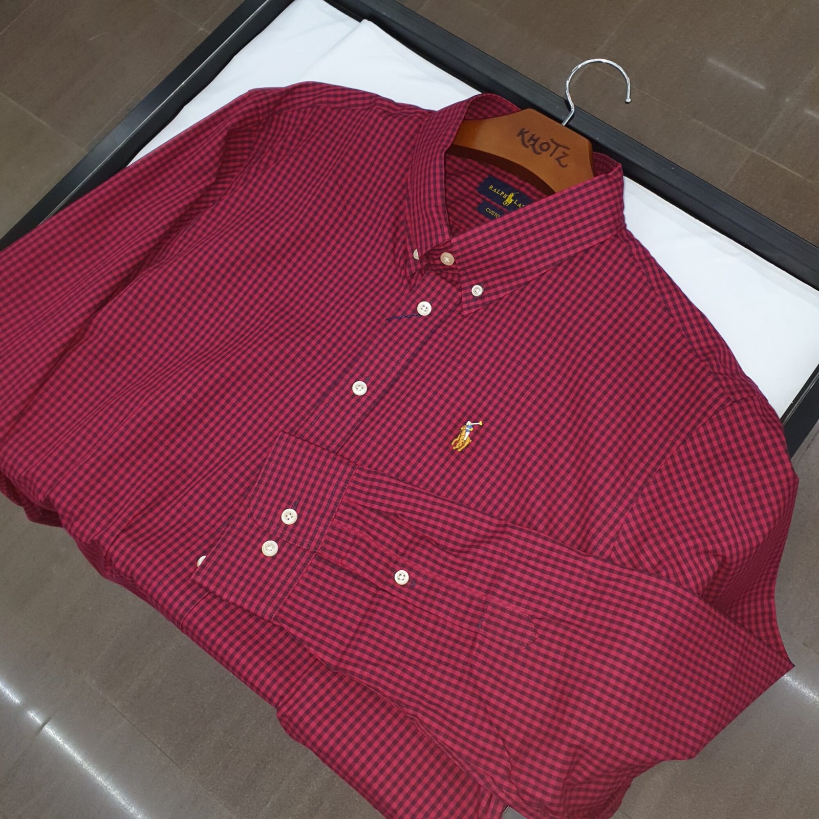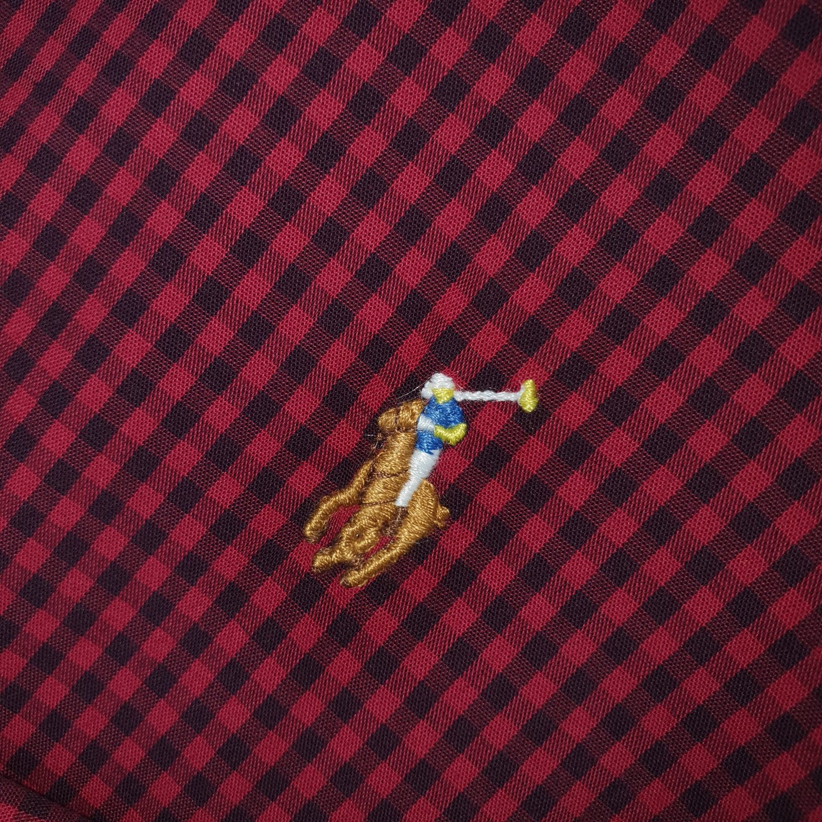 Camisa Ralph Lauren Masculina Micro Xadrez Bordô Pony Colorido