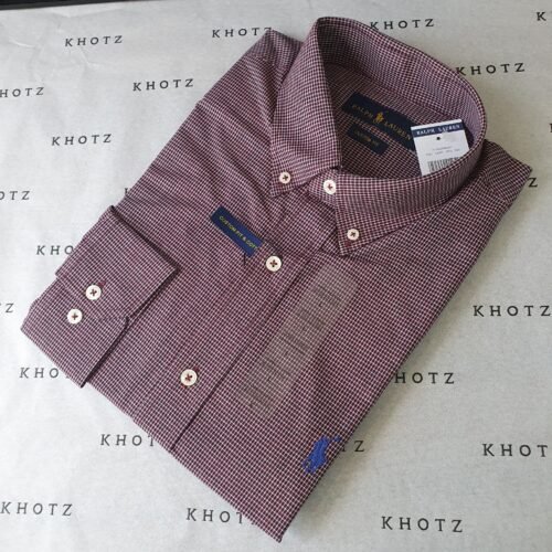 O micro xadrez em tom bordô confere profundidade e requinte ao visual, enquanto o bordado Pony Azul cria um contraste elegante e moderno, evidenciando a identidade clássica da marca.