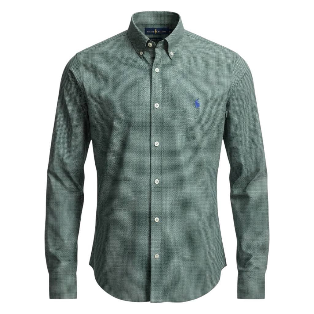 Camisa Ralph Lauren Masculina Micro Xadrez Executivo Verde Pony Azul