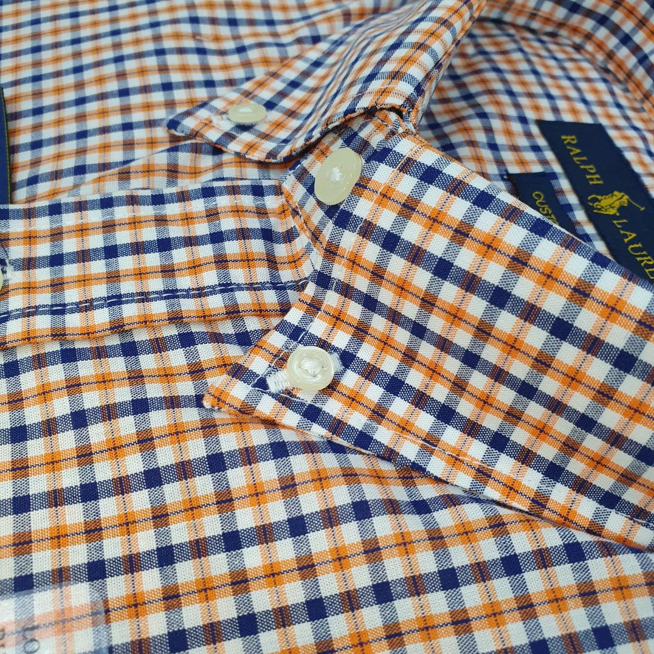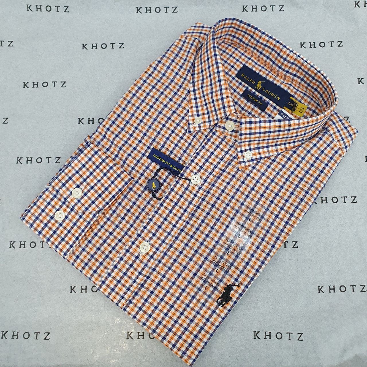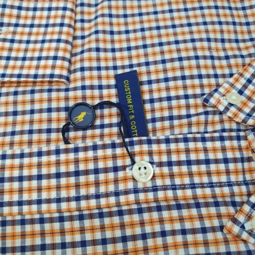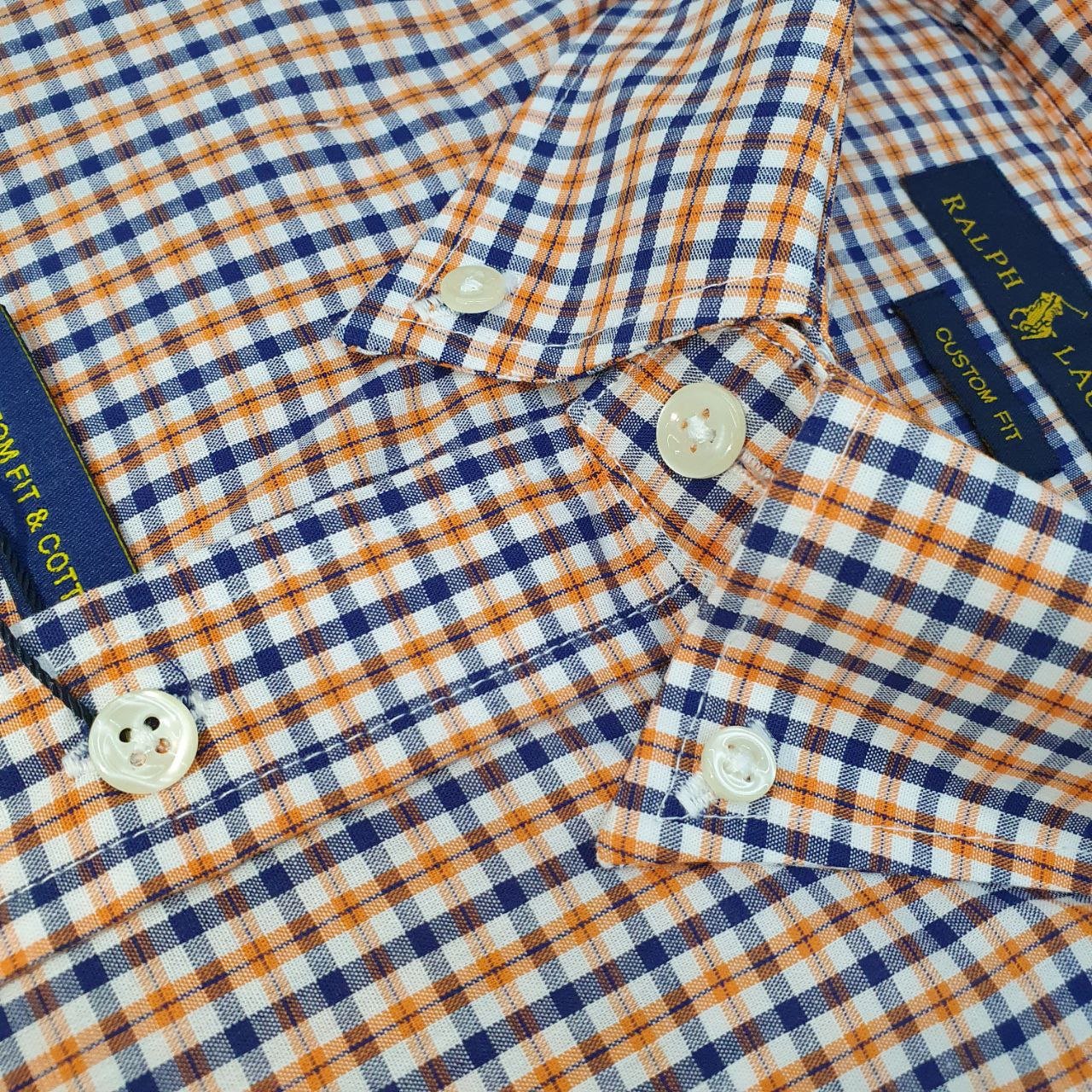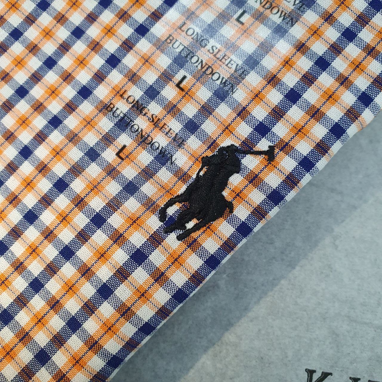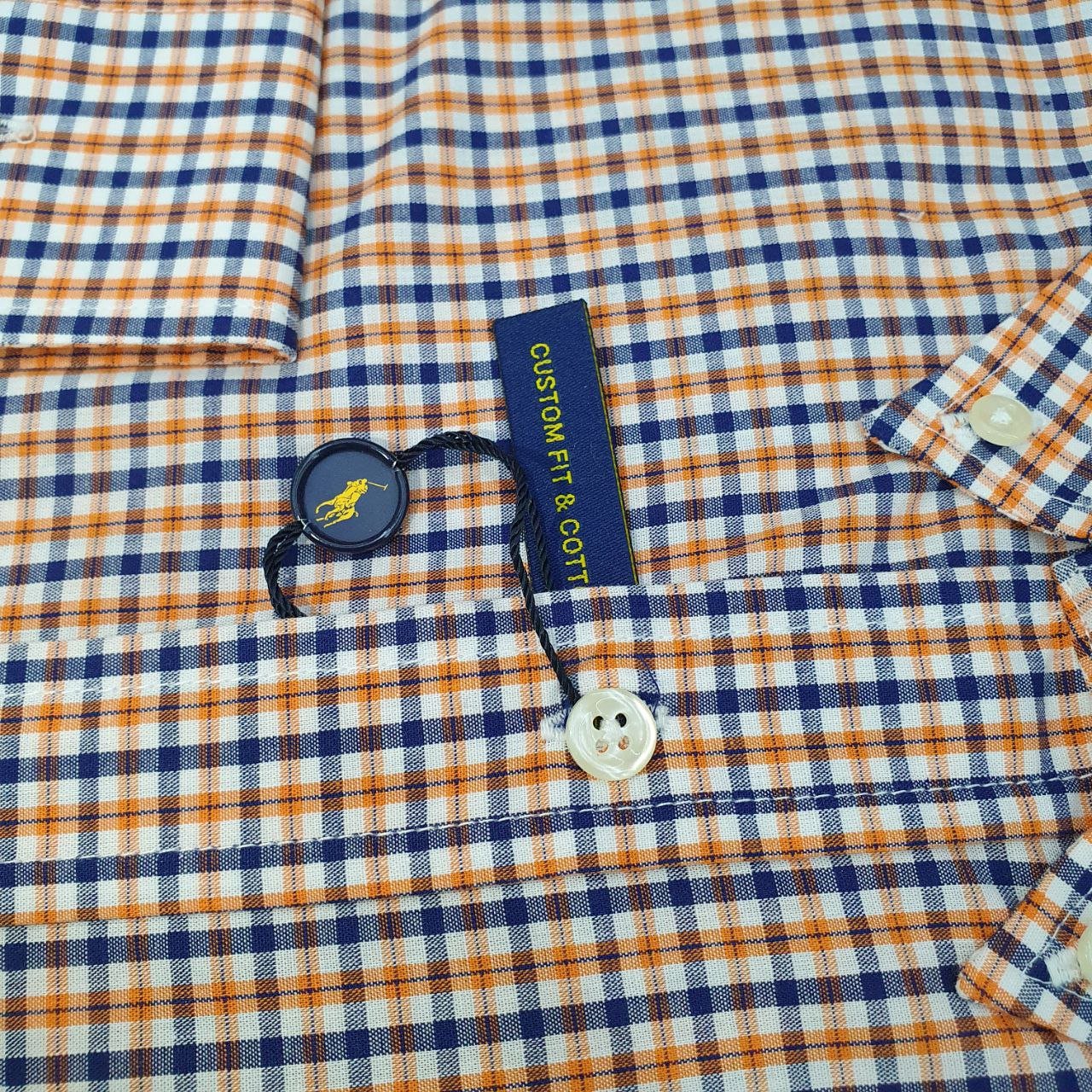 Camisa Ralph Lauren Masculina Micro Xadrez Laranja Pony Preto
