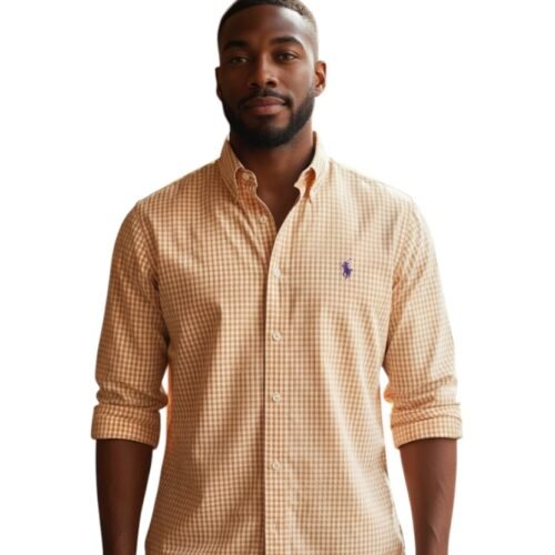 A Camisa Micro Xadrez Laranja é uma peça de visual quente e moderno. Confeccionada em algodão premium, possui toque suave, caimento impecável e o Pony Roxo, que cria um contraste inesperado, ideal para um estilo exclusivo e vibrante.