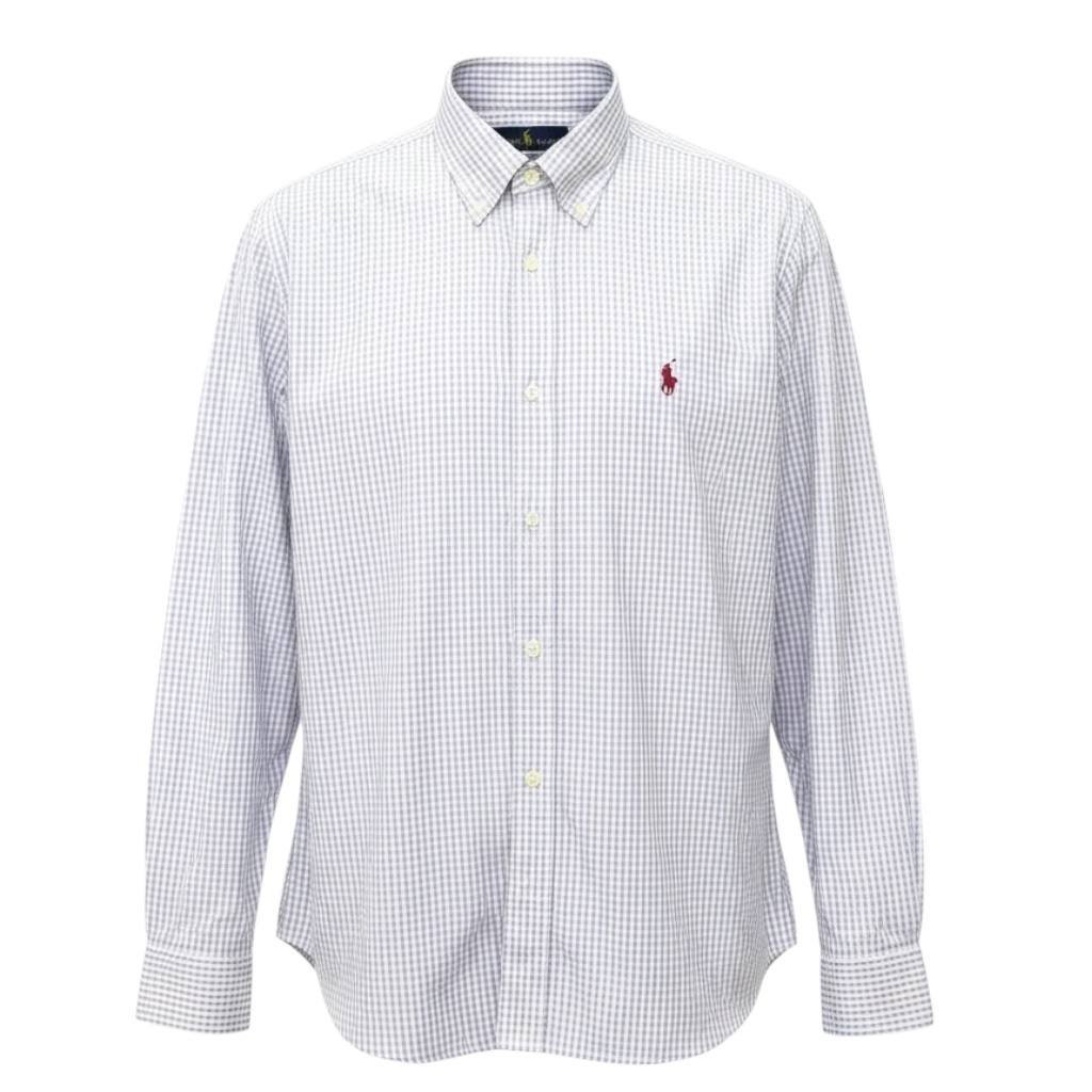 Camisa Ralph Lauren Masculina Micro Xadrez Lavanda Pony Lilás