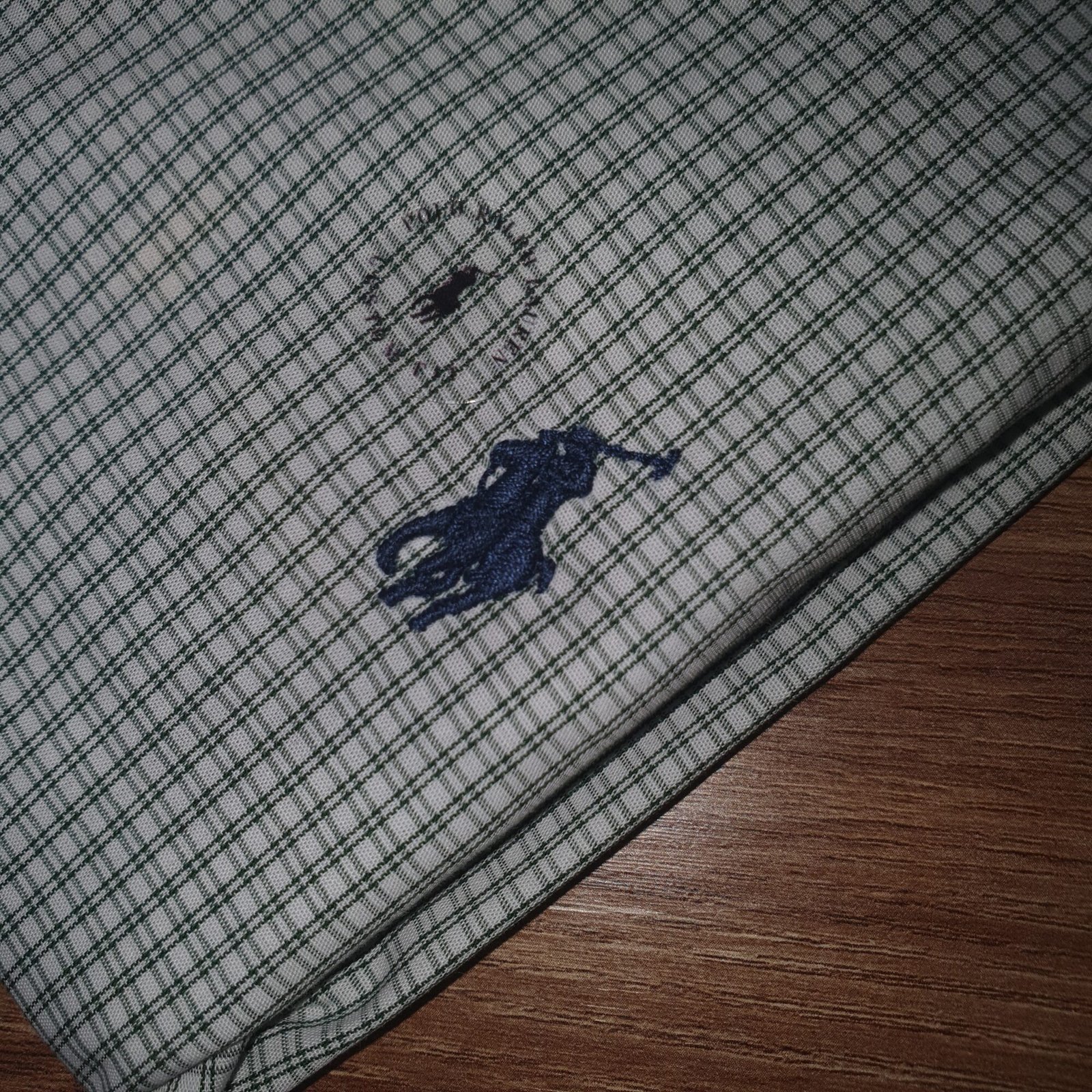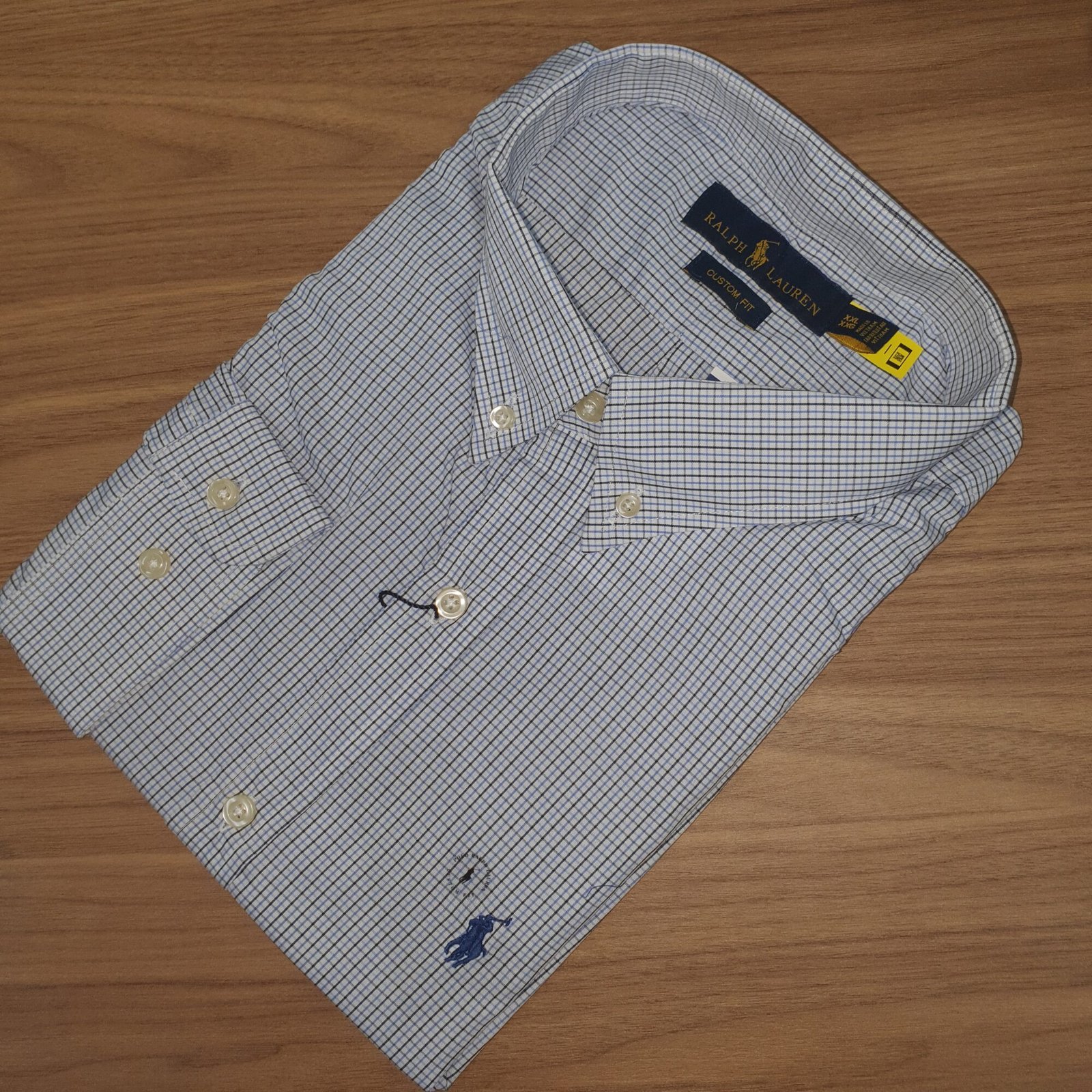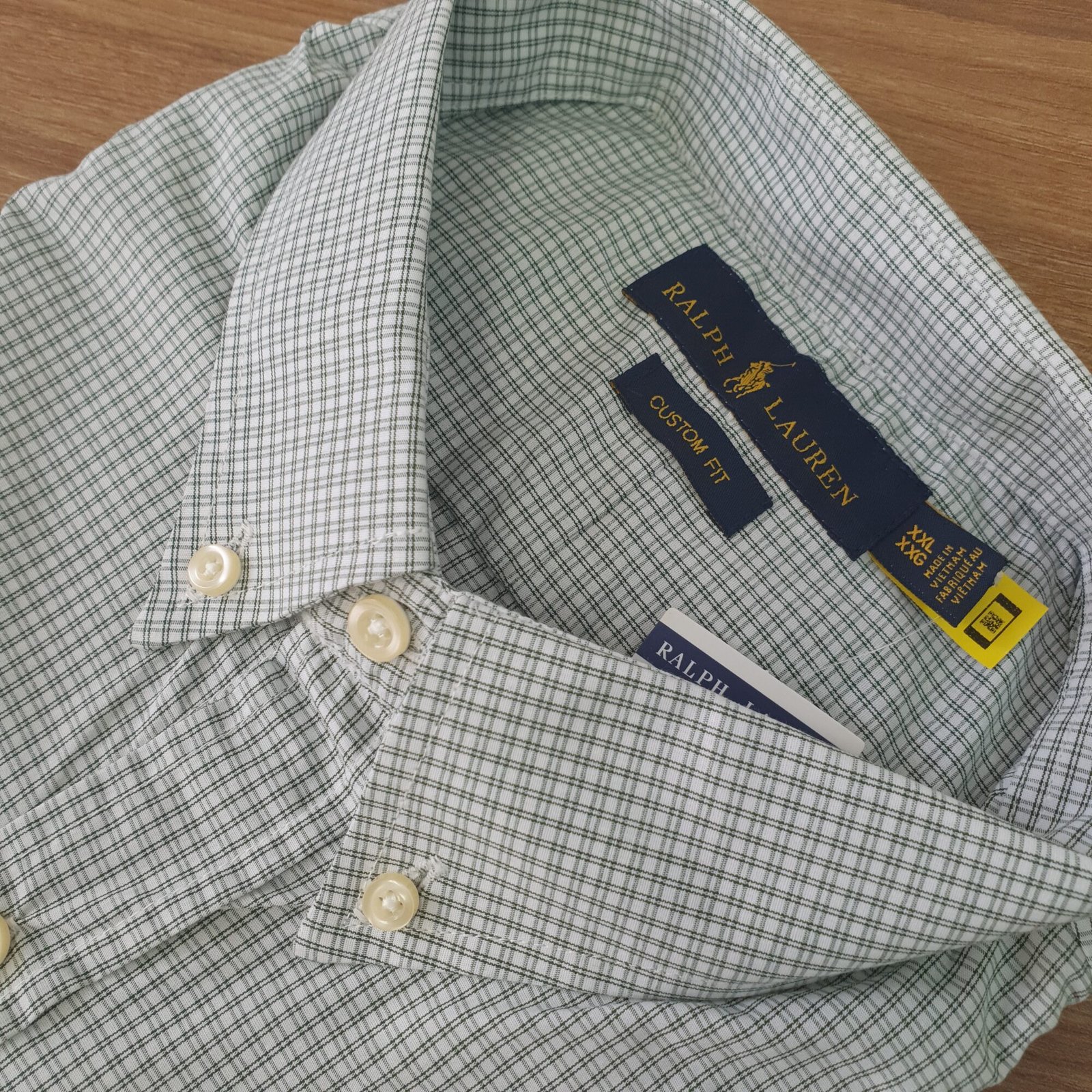 Camisa Ralph Lauren Masculina Micro Xadrez Listras Verde Pony Marinho
