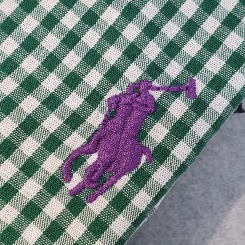 Algodão respirável e macio que garante bem-estar durante todo o dia. O micro xadrez verde combinado ao Pony Roxo cria um visual refinado, atual e distinto.