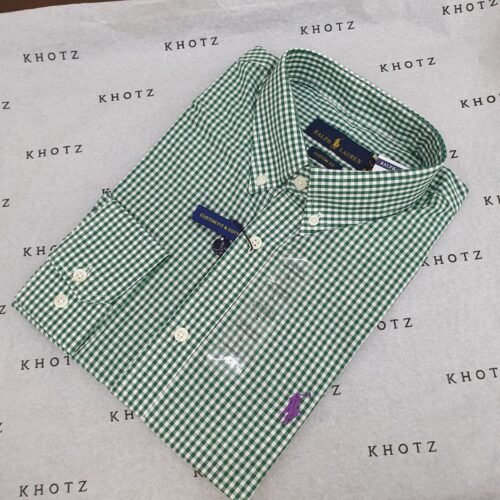 Camisa Ralph Lauren Masculina Micro Xadrez Verde Pony Roxo