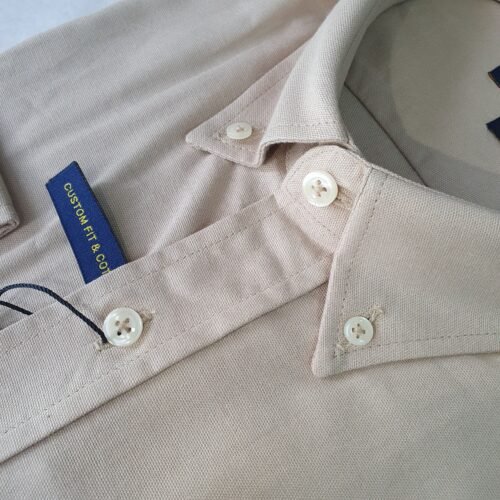 A Camisa Oxford clássica combina com jeans, chinos ou calças de alfaiataria, adaptando-se a diferentes propostas de uso.
