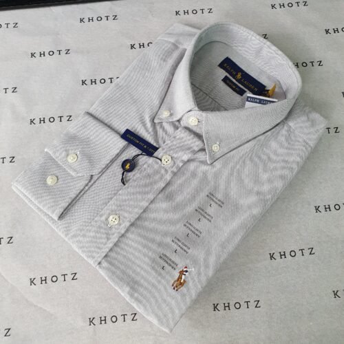 Camisa Ralph Lauren Masculina Oxford Cinza Prateado Pony Colorido