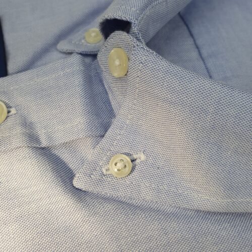 A Camisa Oxford clássica combina com jeans, chinos ou calças de alfaiataria, adaptando-se a diferentes propostas de uso.
