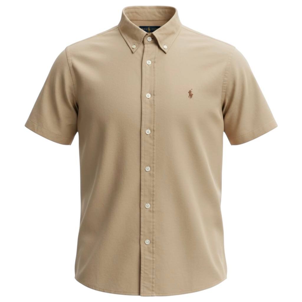 Camisa Ralph Lauren Masculina Oxford Manga Curta Café Pony Chocolate