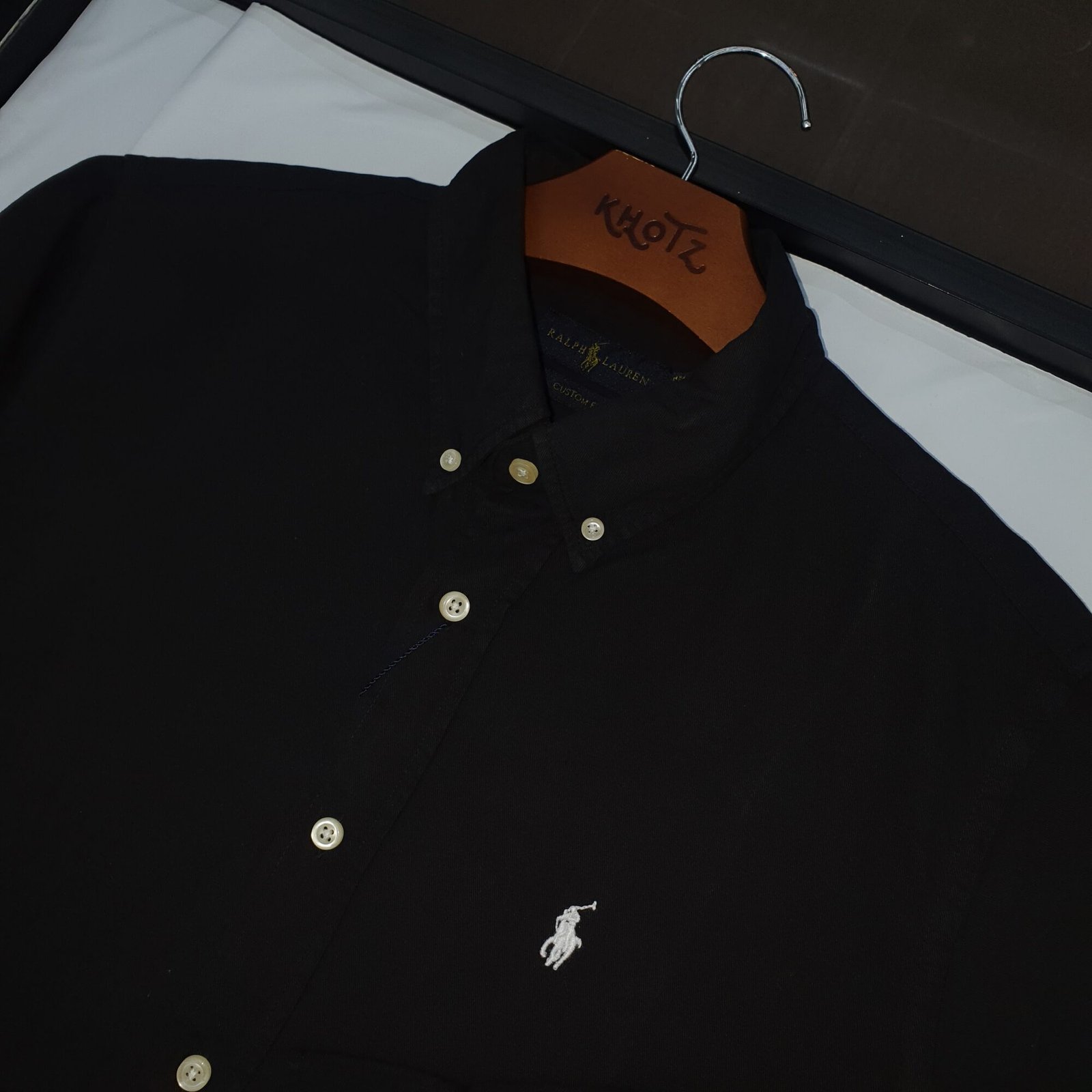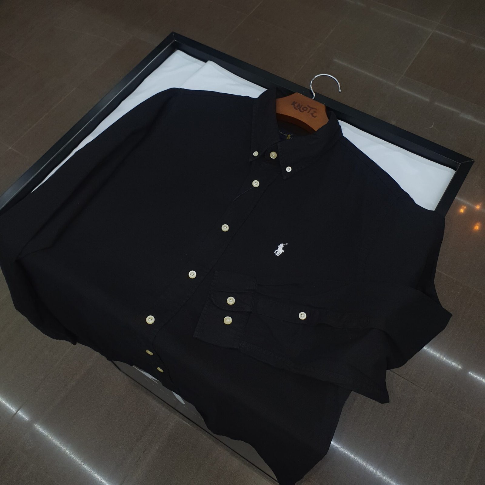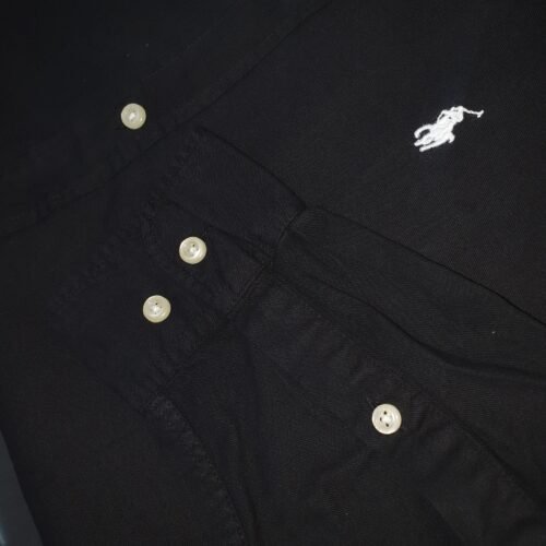 Camisa Ralph Lauren Masculina Oxford Sarjeada Preta Pony Branco