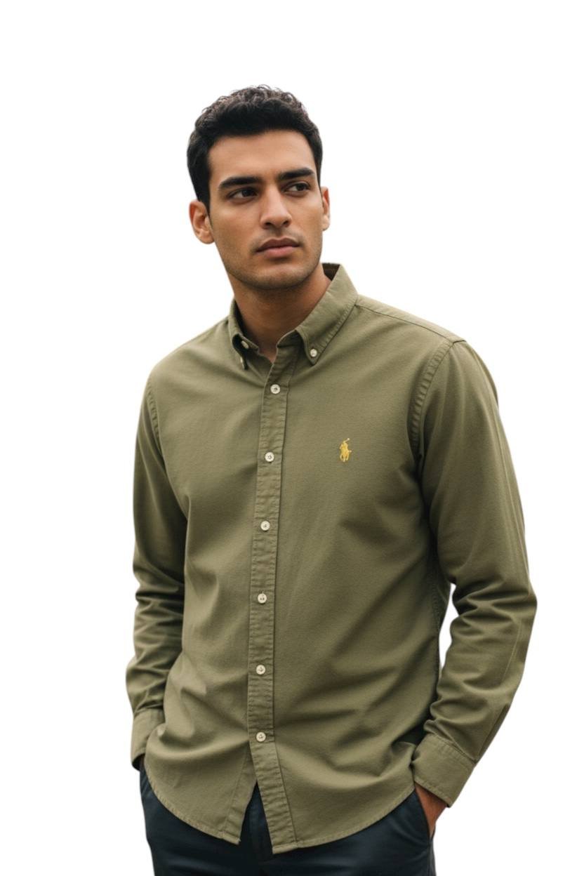 A Camisa Ralph Lauren Masculina Oxford Tinturado Verde Exército com Pony Dourado une sofisticação e personalidade em uma peça marcante. Confeccionada em algodão Oxford premium, oferece toque suave, respirabilidade e caimento impecável. O tom verde exército, com acabamento tinturado exclusivo, confere um ar moderno e imponente, enquanto o bordado Pony Dourado adiciona um toque de elegância e distinção — um verdadeiro símbolo da tradição Ralph Lauren.
