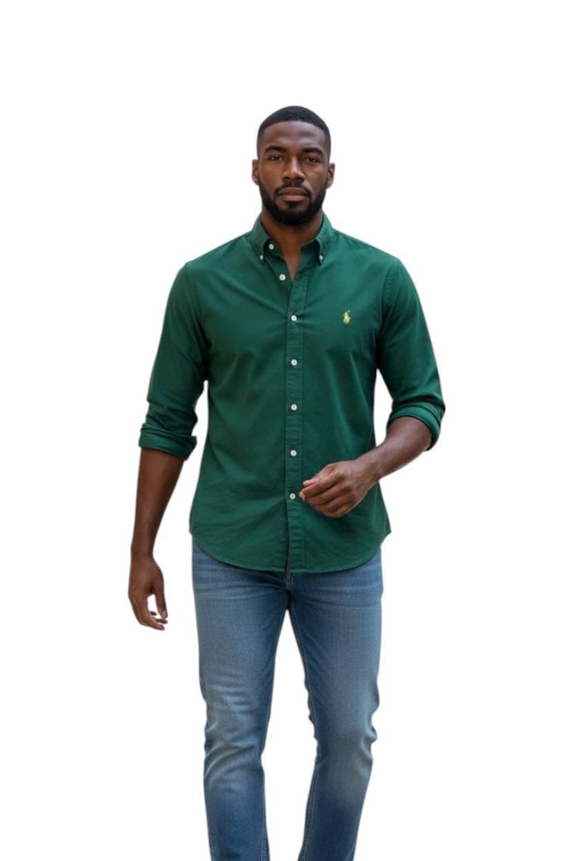 A Camisa Ralph Lauren Masculina Oxford Tinturado Verde Floresta com Pony Dourado é a união perfeita entre sofisticação e presença marcante. Confeccionada em algodão Oxford premium, oferece toque macio, excelente respirabilidade e caimento estruturado. O tom verde floresta, profundo e elegante, aliado ao acabamento tinturado, proporciona um visual moderno e imponente, enquanto o bordado Pony Dourado adiciona um toque de luxo e exclusividade, reafirmando a identidade clássica da Ralph Lauren.