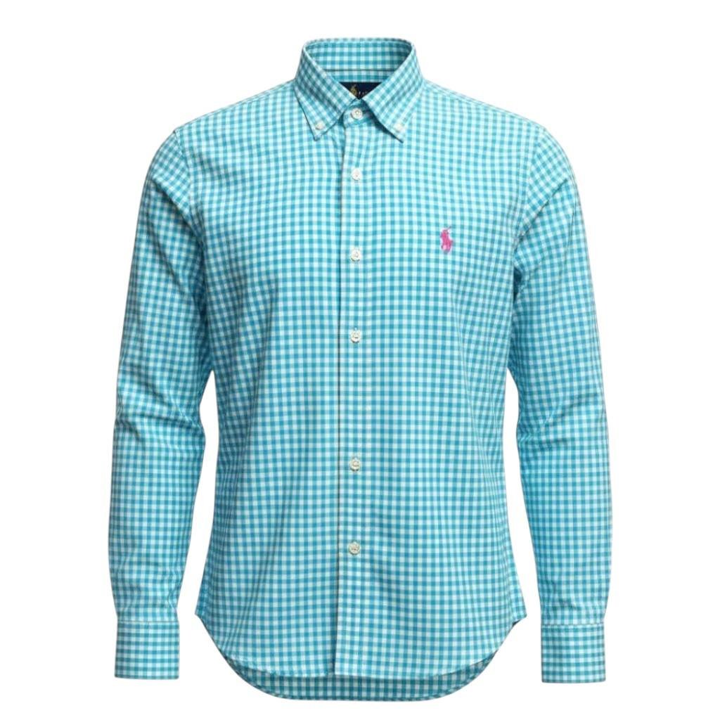 Estilo Exclusivo: O padrão Xadrez Azul Esmeralda e o Pony Rosa criam uma combinação moderna e elegante, reforçando o estilo contemporâneo e a tradição da marca Ralph Lauren.