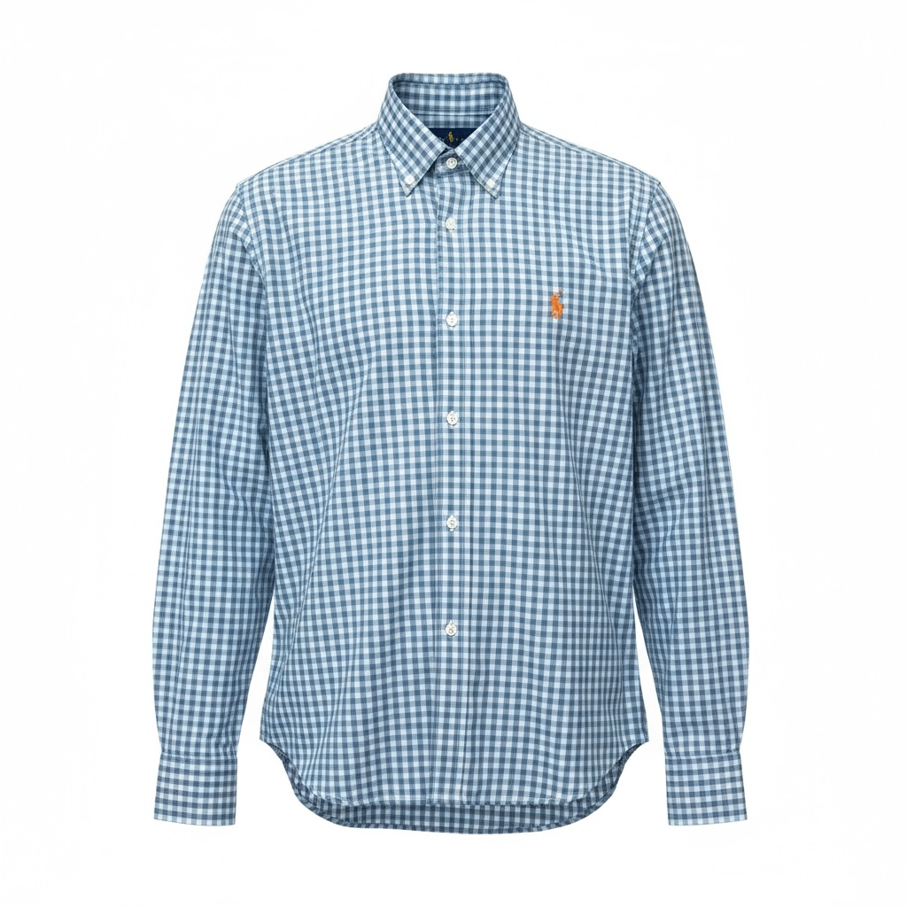 Camisa Ralph Lauren Masculina Xadrez Cinzento Pony Laranja