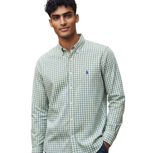 Camisa Ralph Lauren Masculina Xadrez Creme Pony Púrpura