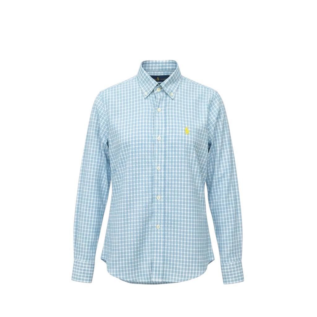 Camisa Ralph Lauren Masculina Xadrez Europeu Azul Bebê Pony Amarelo