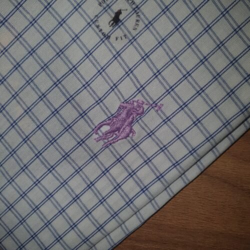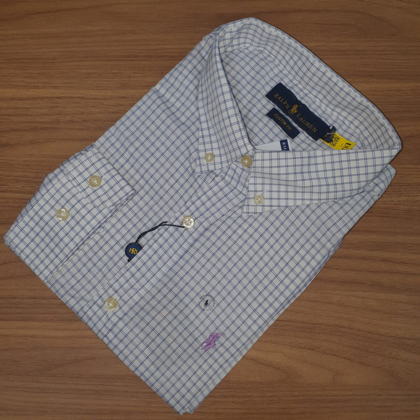 Camisa Ralph Lauren Masculina Xadrez Listras Azuis Pony Lilás