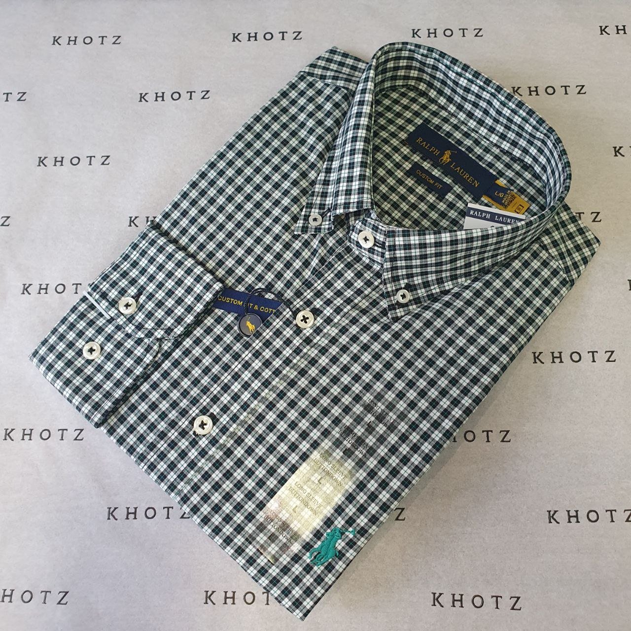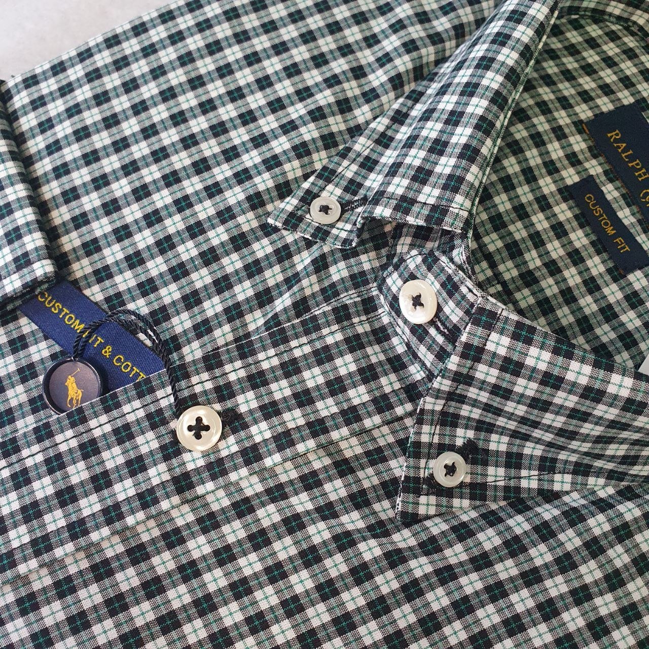 Camisa Ralph Lauren Masculina Xadrez Preto no Branco Pony Verde Esmeralda