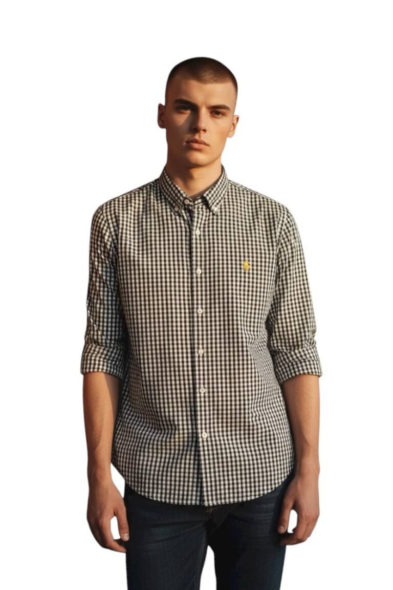 O xadrez em preto — clássico, versátil e naturalmente sofisticado — ganha vida com detalhes marcantes que reforçam presença. O icônico pony bordado em amarelo, vibrante e preciso, adiciona um contraste ousado e refinado, criando um ponto de destaque que valoriza imediatamente o visual.
