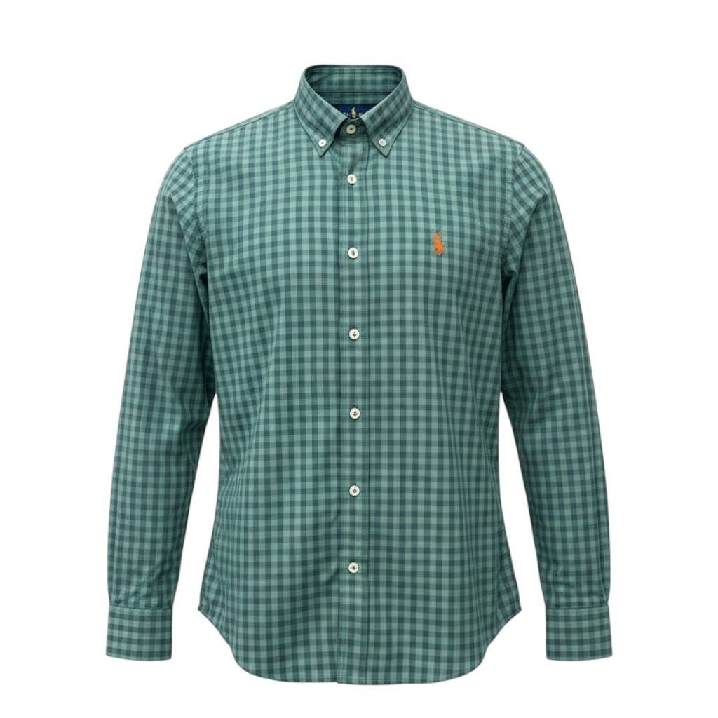 Camisa Ralph Lauren Masculina Xadrez Verde Pony Laranja