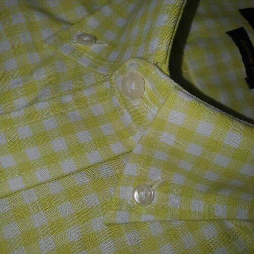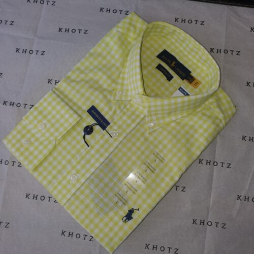 Camisa Ralph Lauren Masculina Xadrez Viscolinho Amarelo Cítrico Pony Marinho
