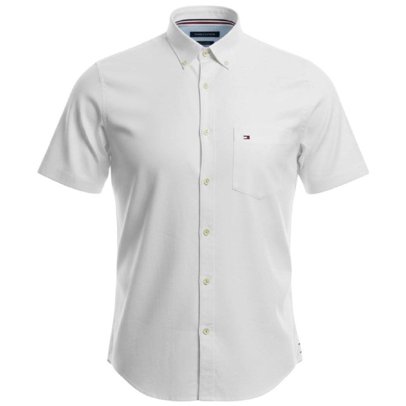 Camisa Tommy Hilfiger Masculina Oxford Manga Curta Branca