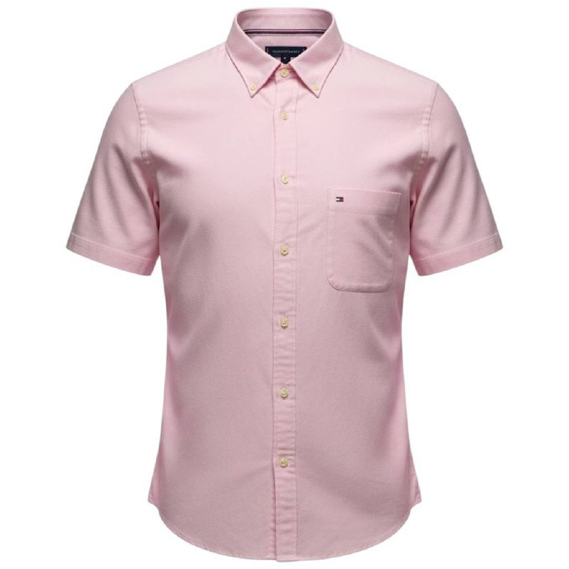 Camisa Tommy Hilfiger Masculina Oxford Manga Curta Rosa Bebê