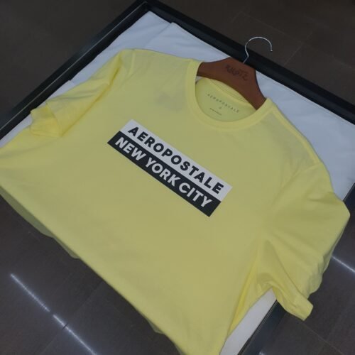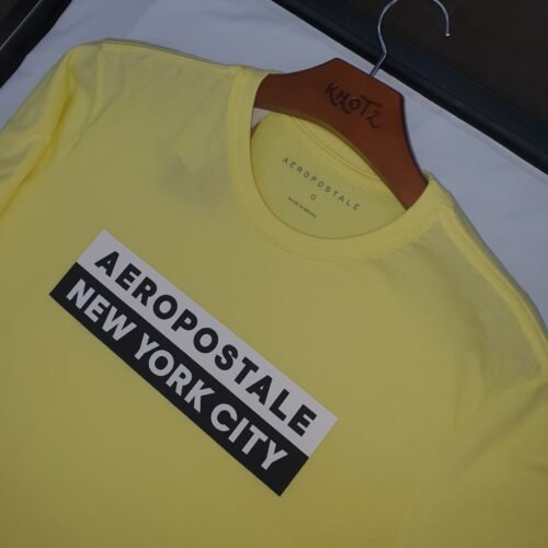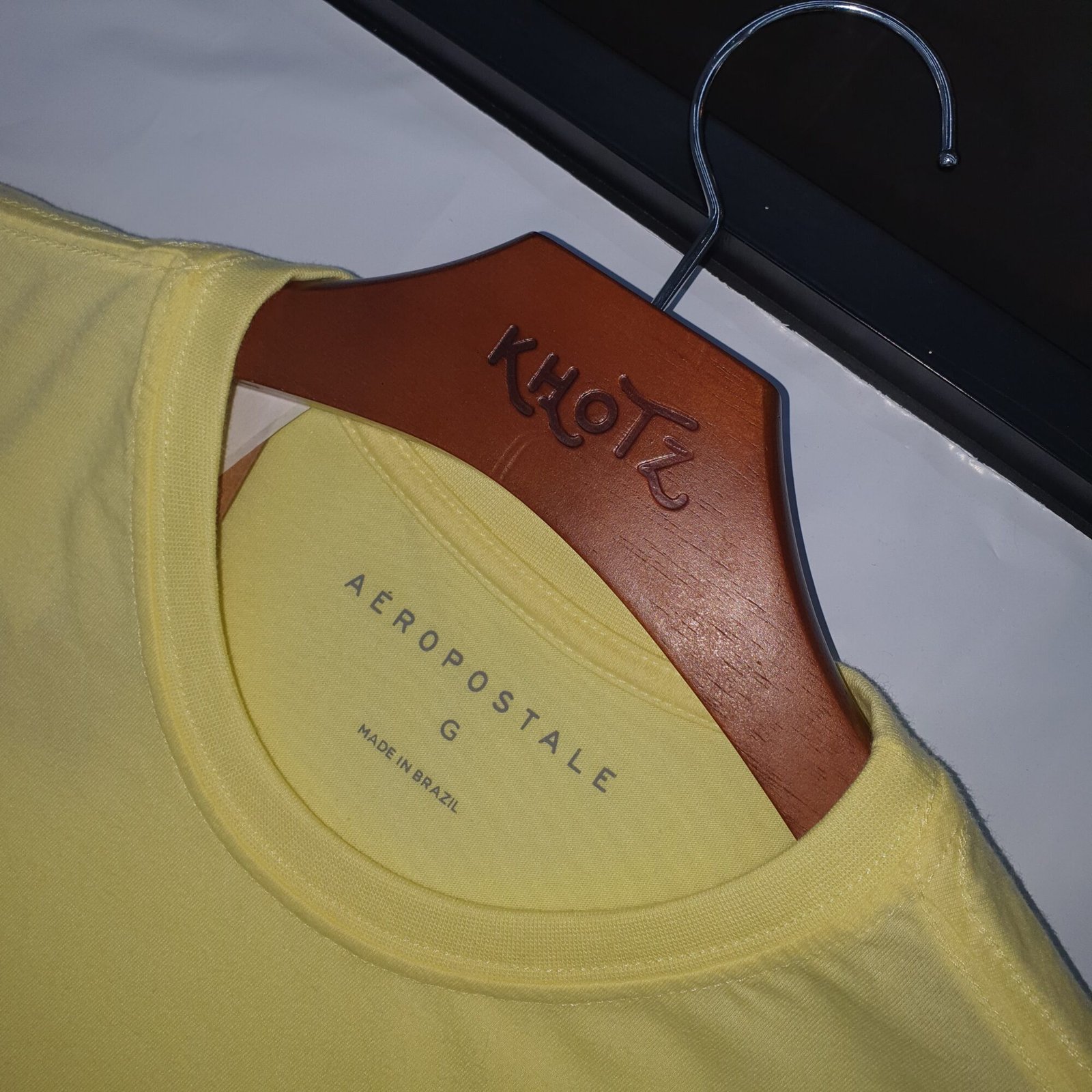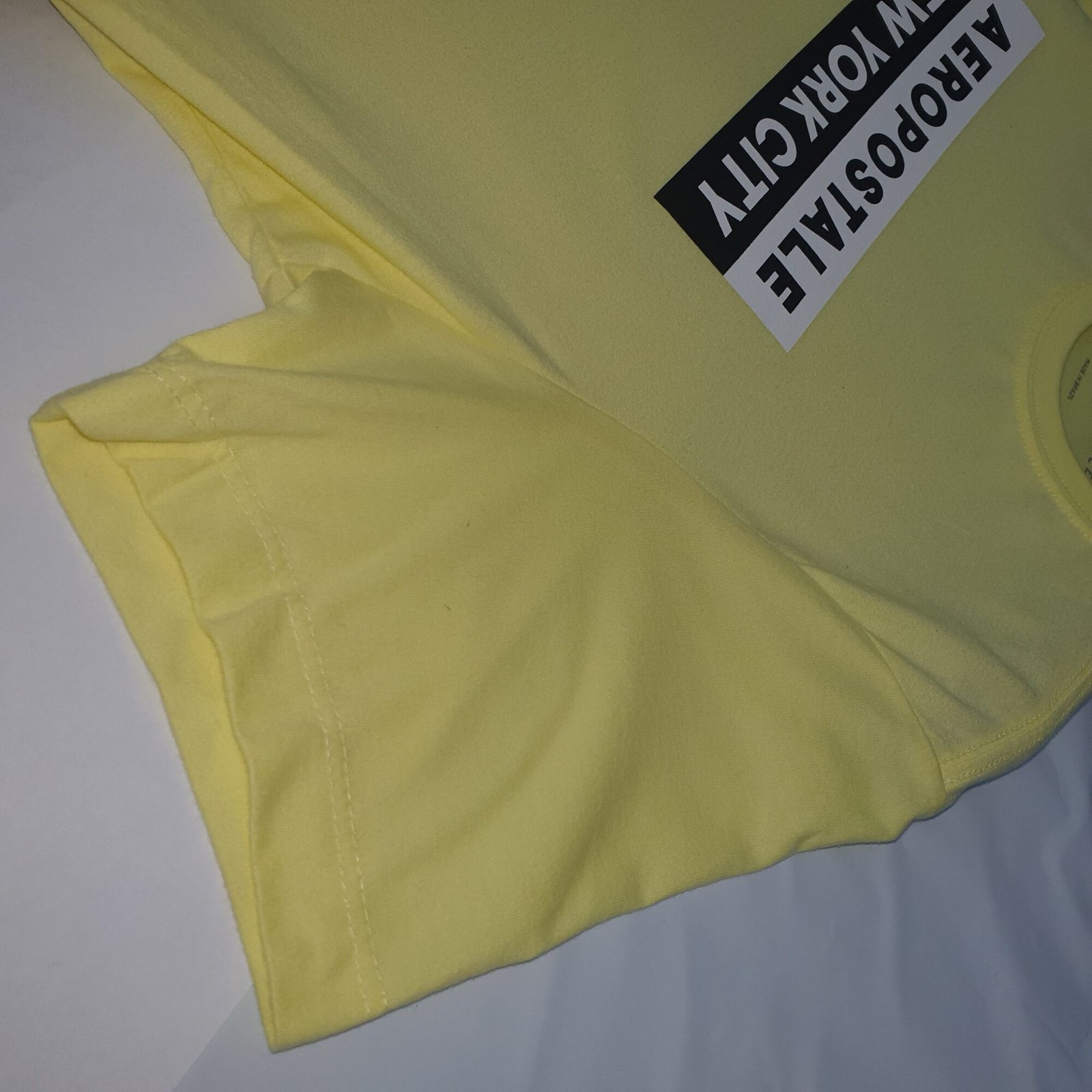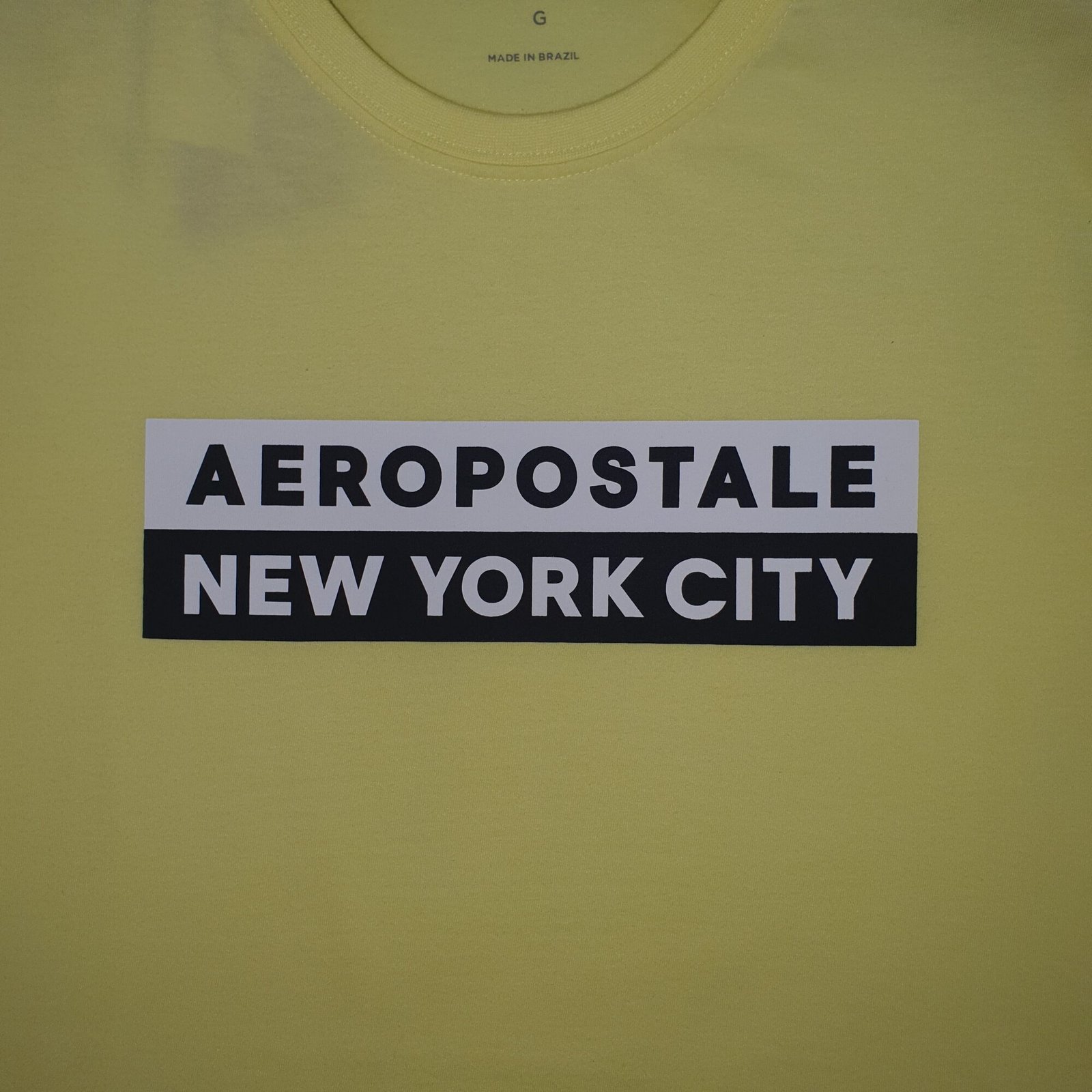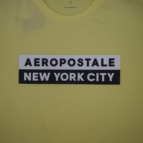 Camiseta Abercrombie Masculina Amarela Estampa Letreiro Branco e Preto