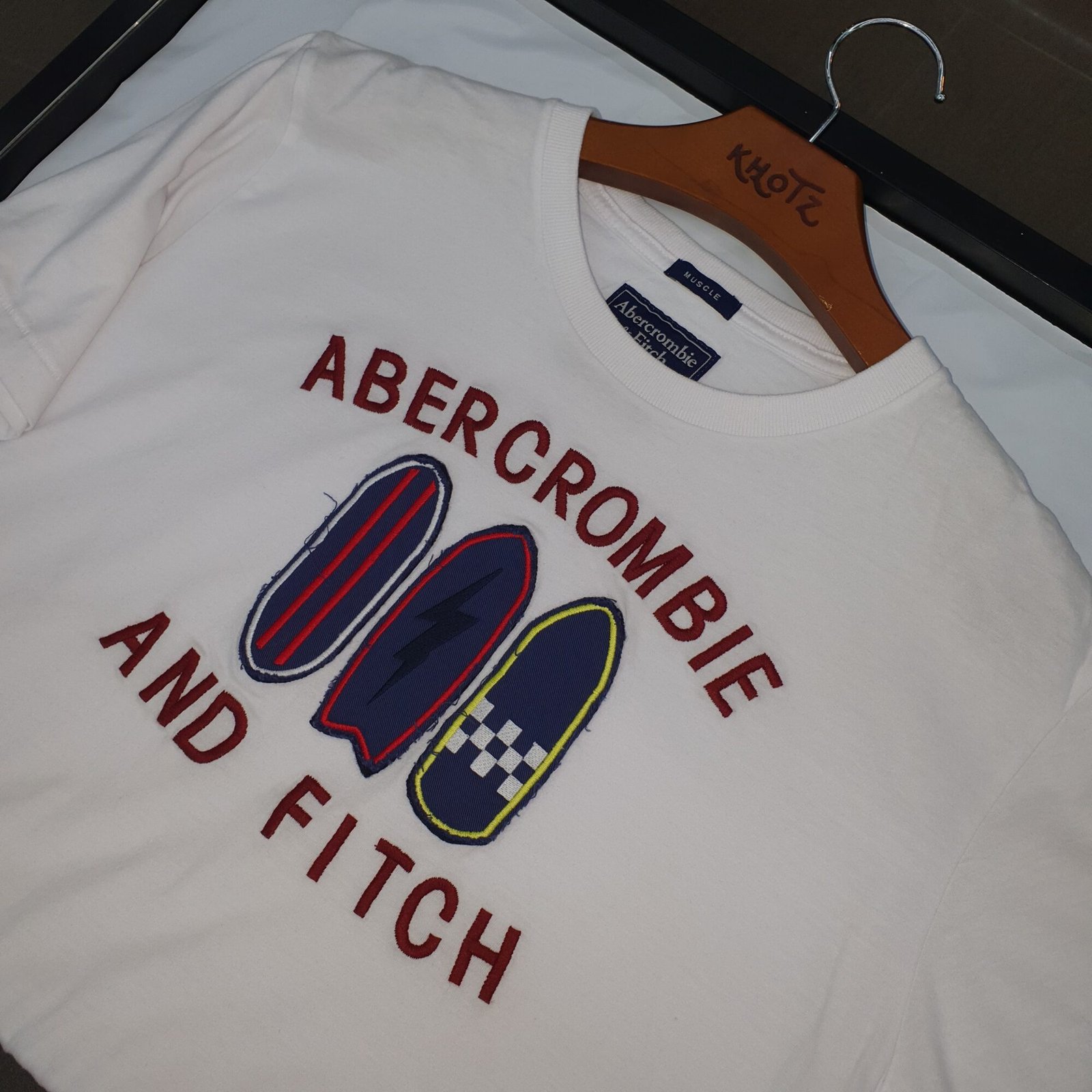 Camiseta Abercrombie Masculina Branca Estampa Pranchas