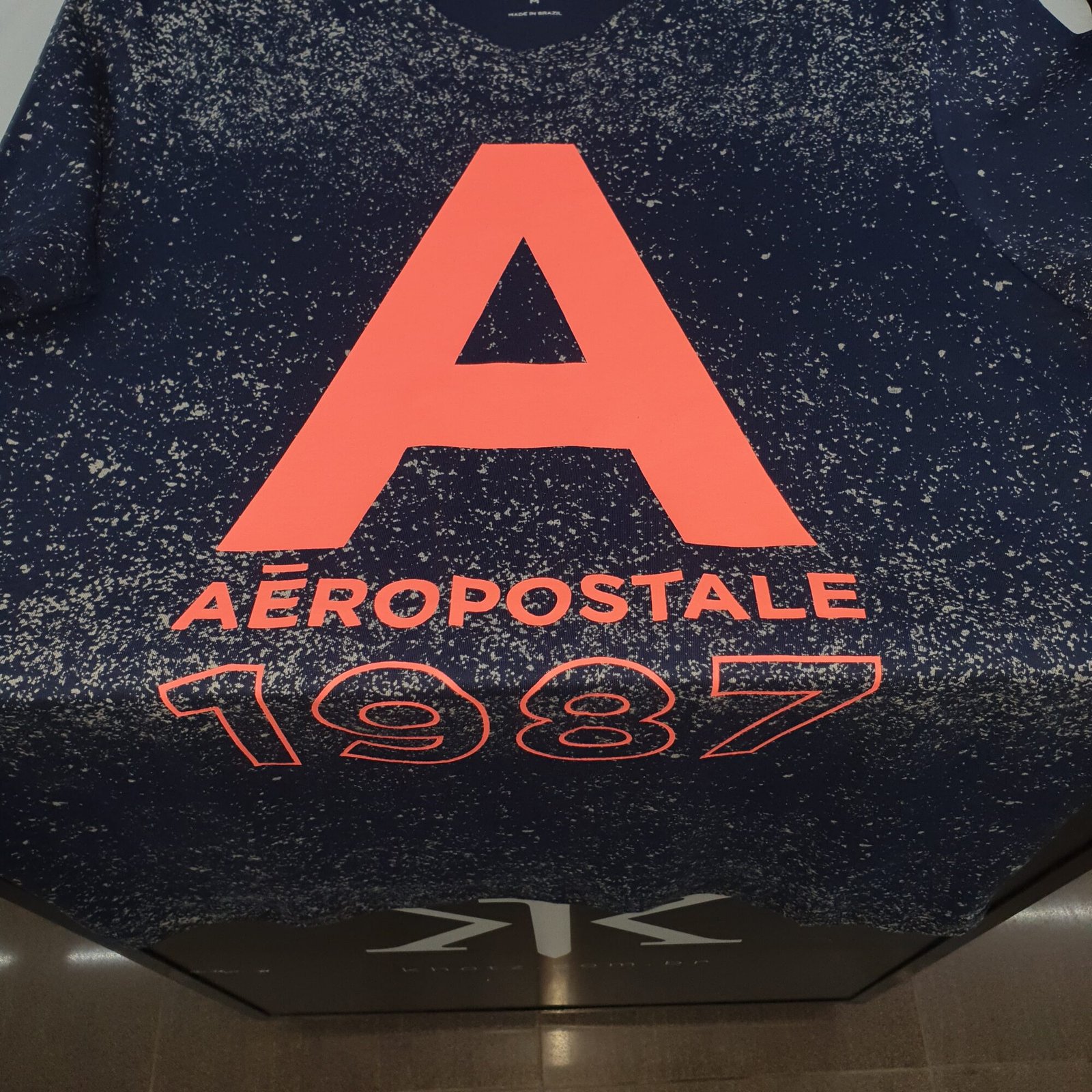 Camiseta Aeropostale Masculina Azul Galáxia Estampa Rosê