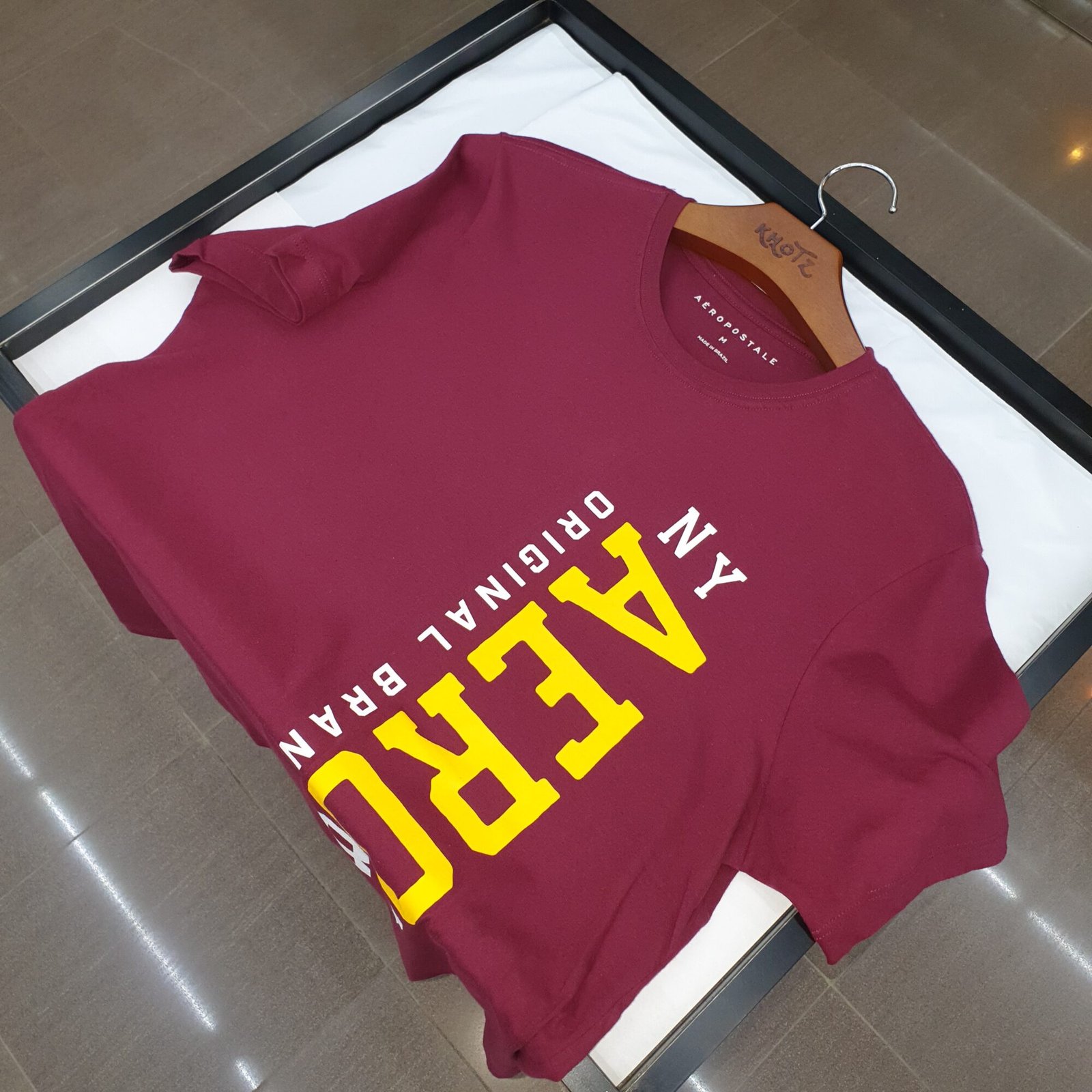 Camiseta Aeropostale Masculina Bordô Estampa Vertical NY