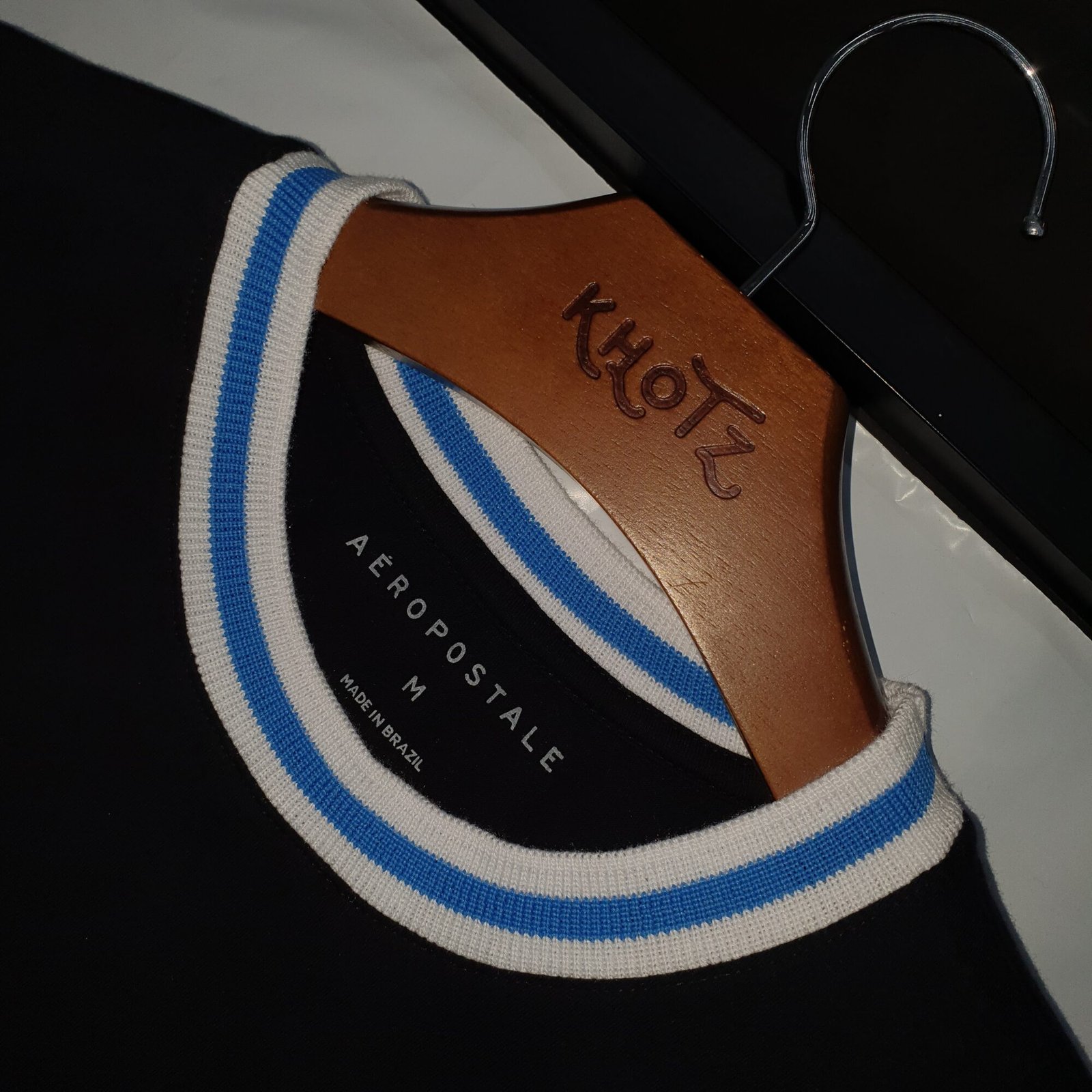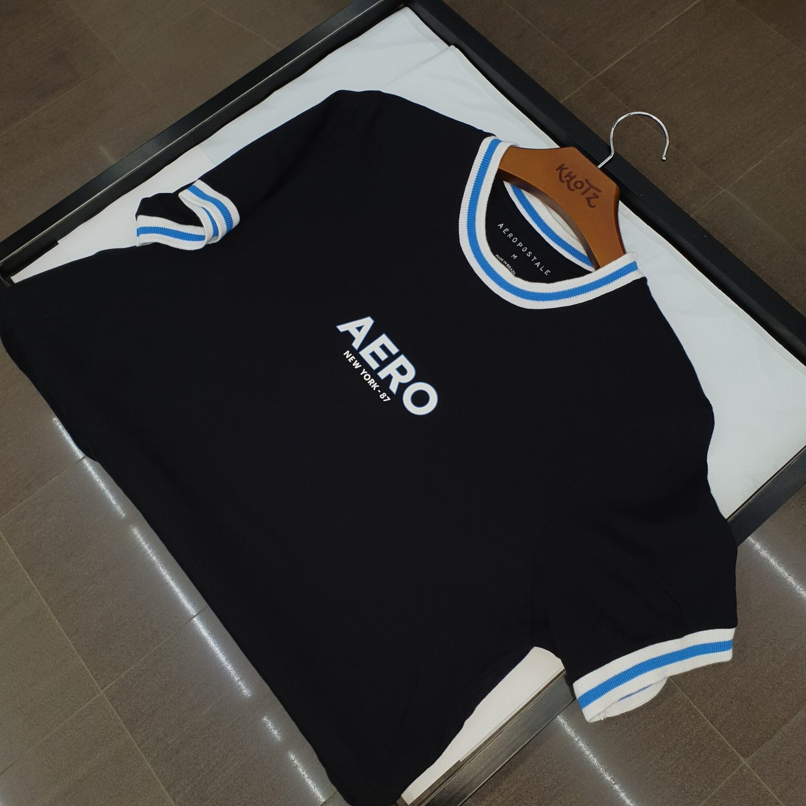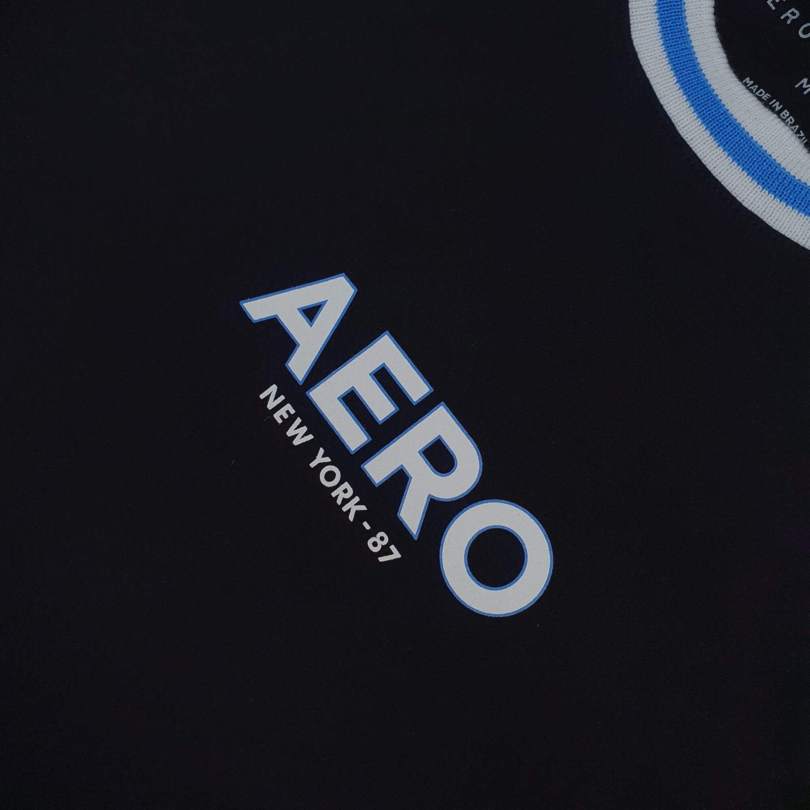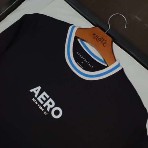 Camiseta Aeropostale Masculina Preta Gola Tricolor Logo Branco