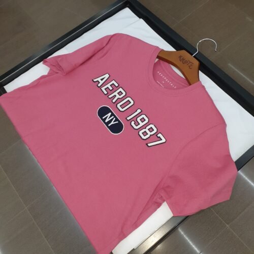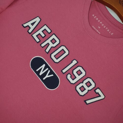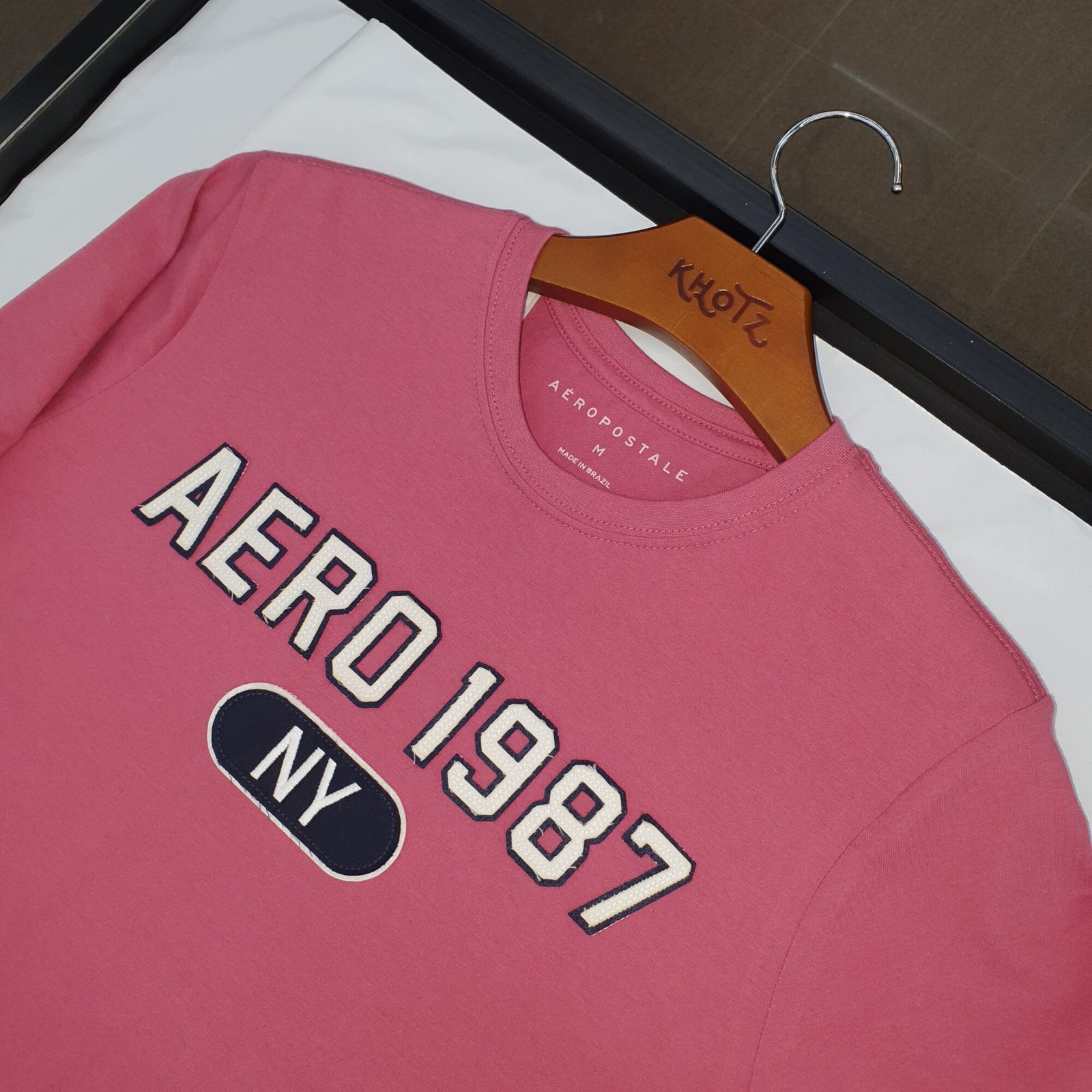 Camiseta Aeropostale Masculina Rosa NY 1987 Logo Branco