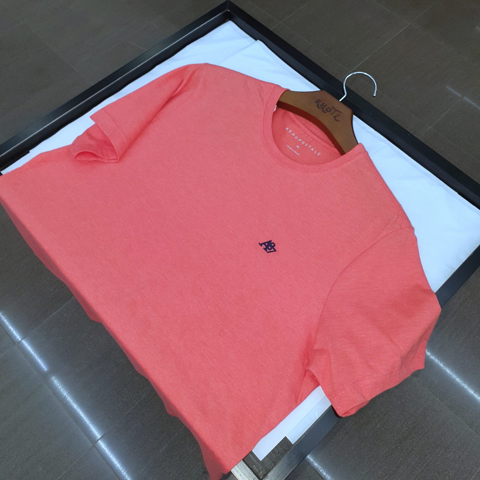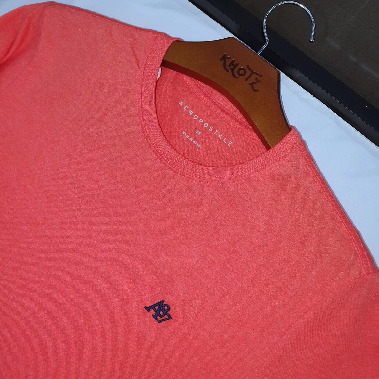 Camiseta Básica Aeropostale Masculina Salmão Mescla Logo Preto