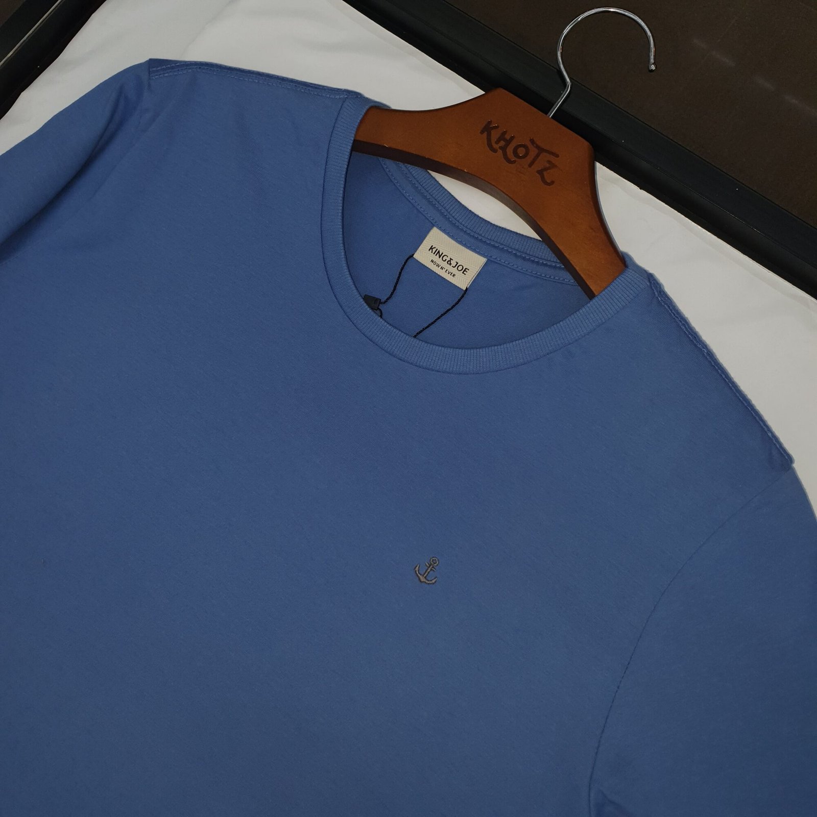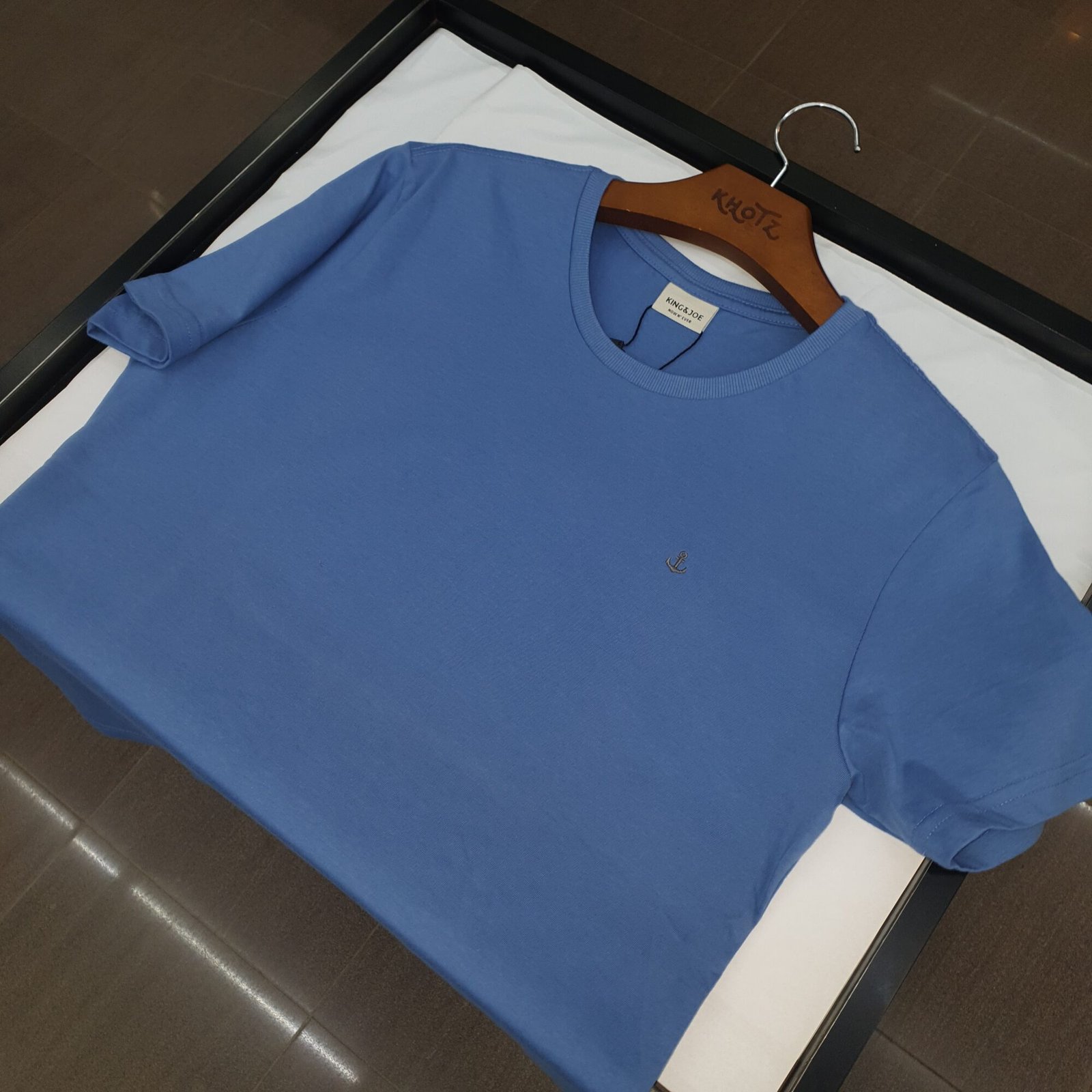 Camiseta Básica king&Joe Masculina Azul Gelo Logo Cinza