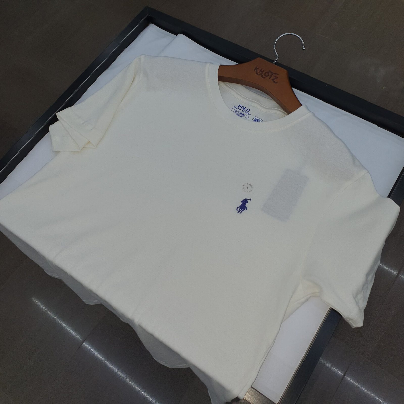 O grande destaque fica por conta do icônico logo da Ralph Lauren bordado em azul-marinho (pony), símbolo de autenticidade, tradição e exclusividade da marca.