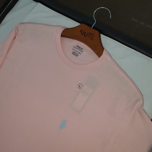 Camiseta Básica Ralph Lauren Masculina Rosa Bebê Pony Azul Neon