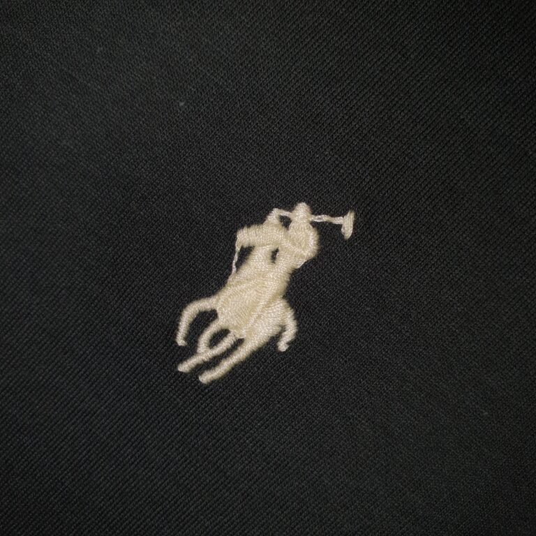 O destaque fica por conta do icônico logo da Ralph Lauren bordado em creme (pony), criando um contraste sutil e refinado que reforça a identidade premium da marca.